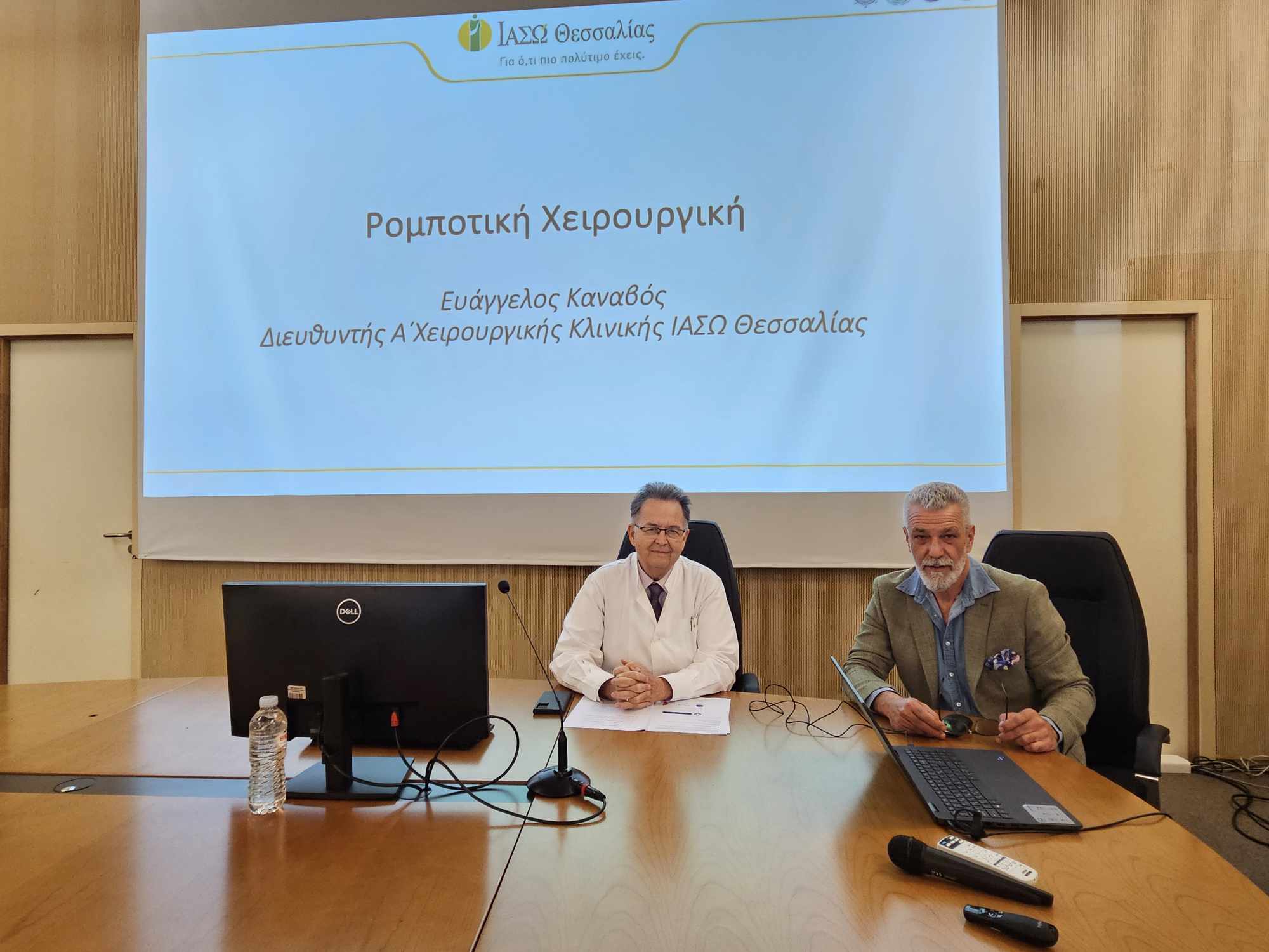 Για τη πρωτοποριακή αυτή ευκαιρία που έχουν οι ασθενείς, να λάβουν την πιο αποτελεσματική θεραπεία, χωρίς να χρειάζεται πλέον να απομακρύνονται από τον τόπο τους, μίλησε, στην εκπαιδευτική ομιλία που πραγματοποιήθηκε στο ΙΑΣΩ Θεσσαλίας, ο Γενικός Χειρουργός και Διευθυντής Α’ Χειρουργικής Κλινικής ΙΑΣΩ Θεσσαλίας κ. Ευάγγελος Καναβός, υπό το συντονισμό του Προέδρου του Επιστημονικού Συμβουλίου Αναισθησιολόγου Εντατικολόγου Δρ. Απόστολου Κομνού.
