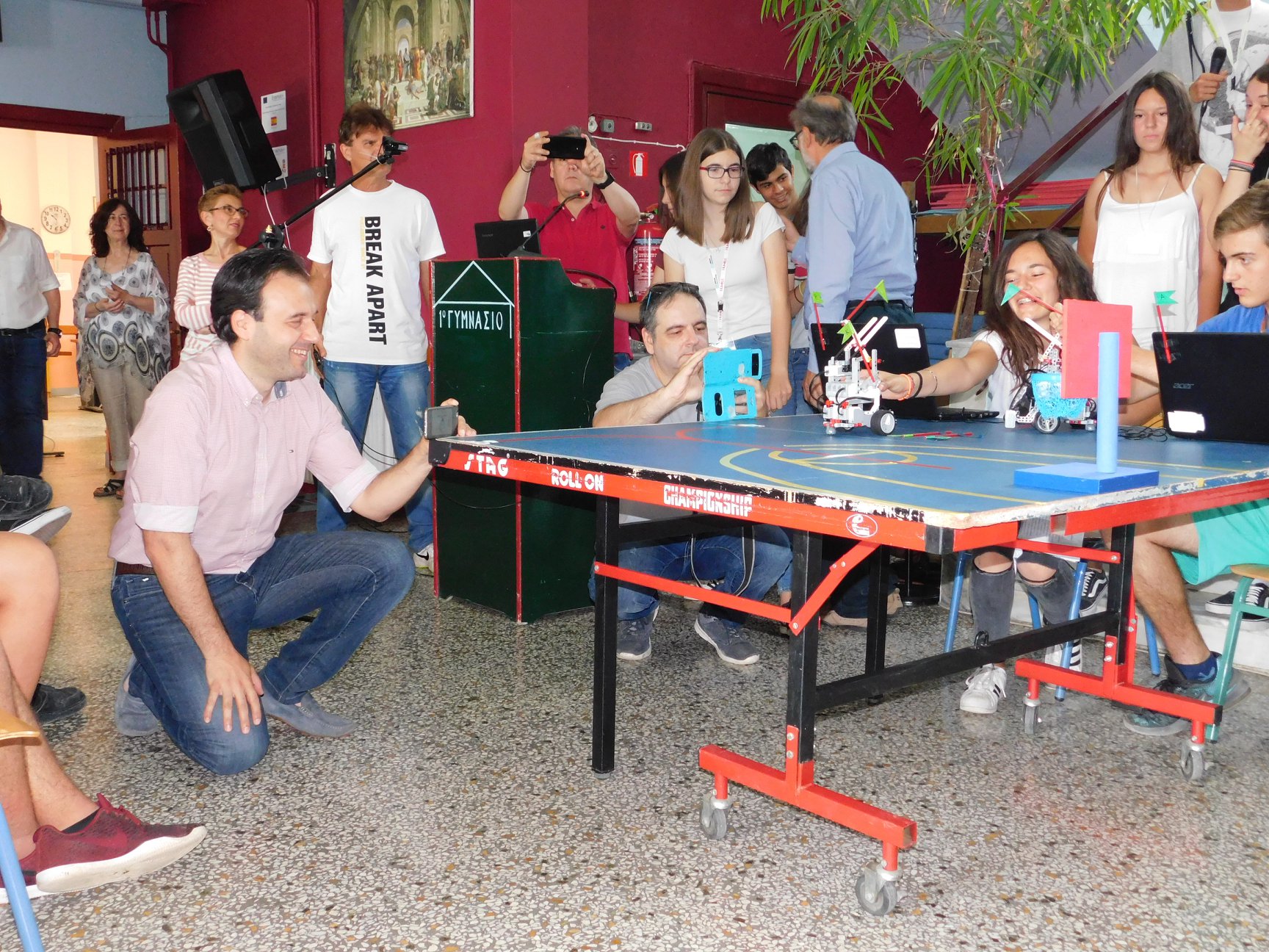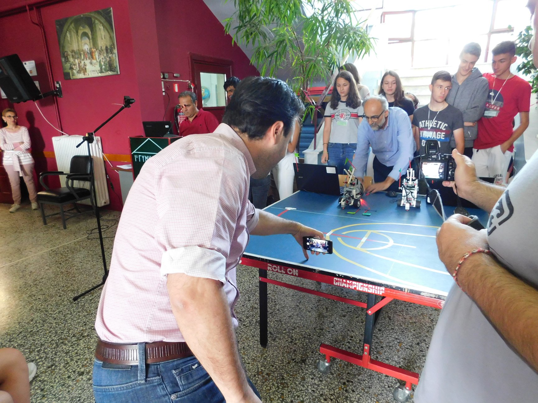 Μάλιστα στο πλαίσιο της εκπαιδευτικής ρομποτικής, οι παριστάμενοι παρακολούθησαν αγώνα καλαθοσφαίρισης με δύο ρομποτάκια (Robo Basket) μεταξύ δύο διαφορετικών ομάδων μαθητών.
