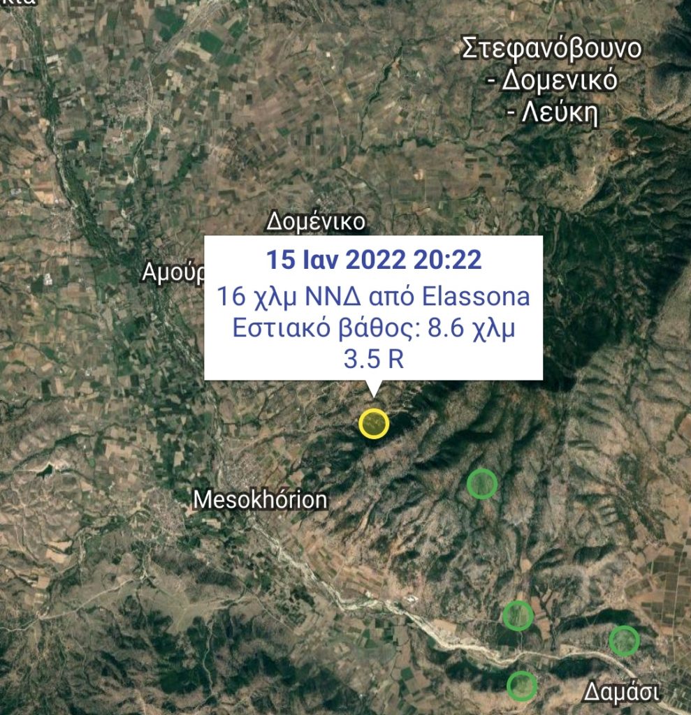 Σεισμική δόνηση σημειώθηκε πριν από λίγα λεπτά στην περιοχή μεταξύ Ελασσόνας και Τυρνάβου.