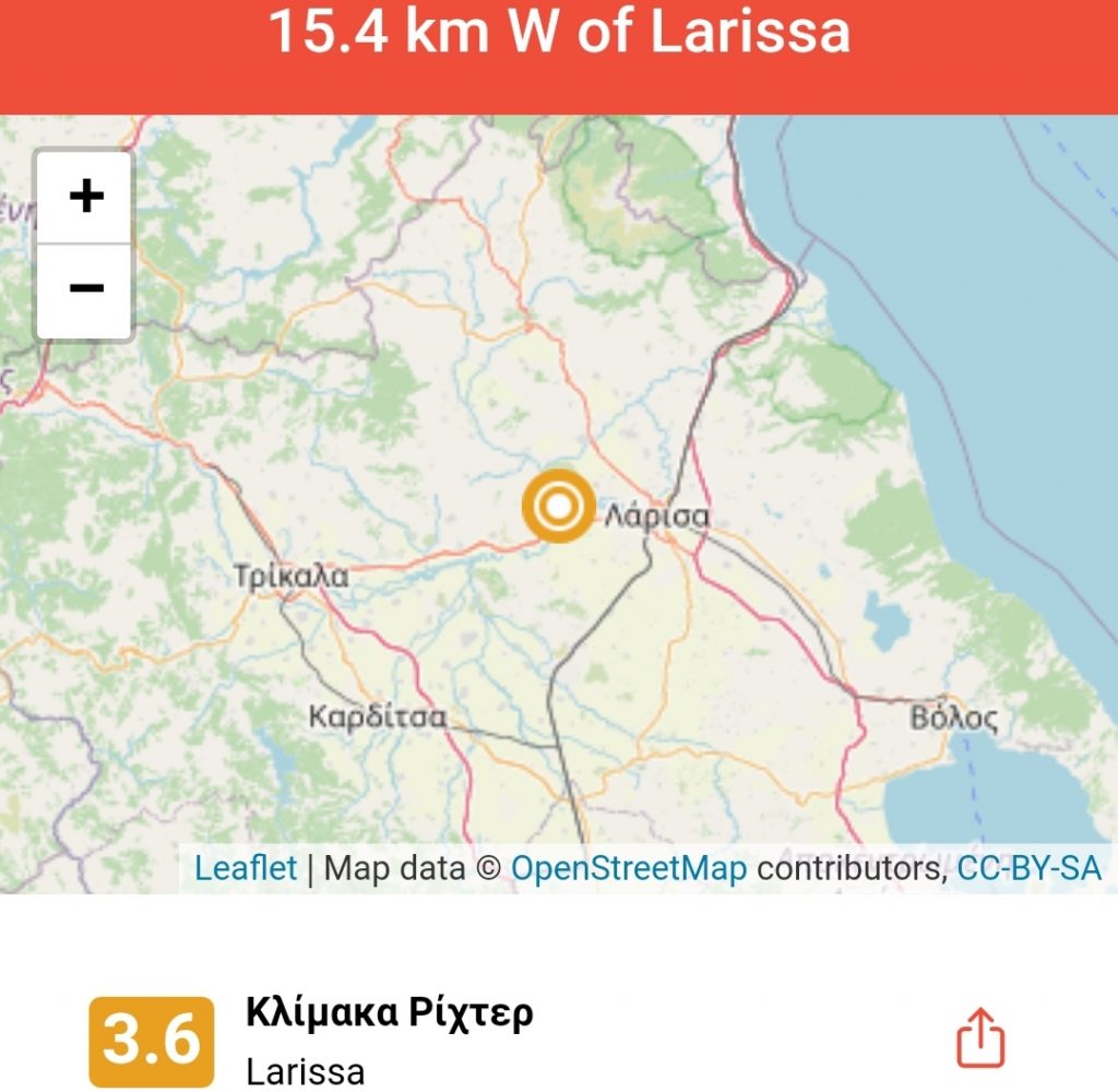 Σύμφωνα με τα στοιχεία που συλλέγει το trikalavoice.gr ο σεισμός είχε επίκεντρο 15 χλμ. δυτικά της Λάρισας και λόγω του μικρού εστιακού του βάθους-3 χλμ.-έγινε αισθητός στα Τρίκαλα και στην ευρύτερη περιοχή.