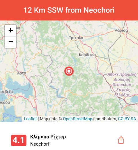 Σύμφωνα με τα στοιχεία που συλλέγει το trikalavoice.gr ο σεισμός είχε επίκεντρο το Νεοχώρι της Λίμνης Πλαστήρα και εστιακό βάθος 16. χλμ..