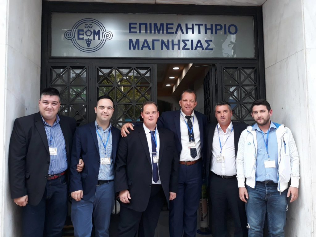 Στη φωτό διακρίνεται ο Μιχάλης Παναγιώτου με τους συναδέλφους του, ιδιοκτήτες γραφείων τελετών των Τρικάλων (από αριστερά) Νίκος και Άγγελος Πλιάτσικας, Κωνσταντίνος Γκαγκάς, Αθανάσιος Ζάχος και Ζήσης Τέγος.