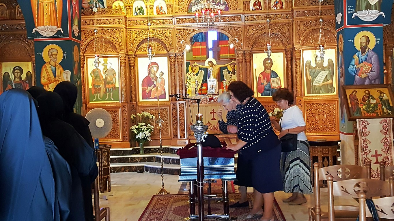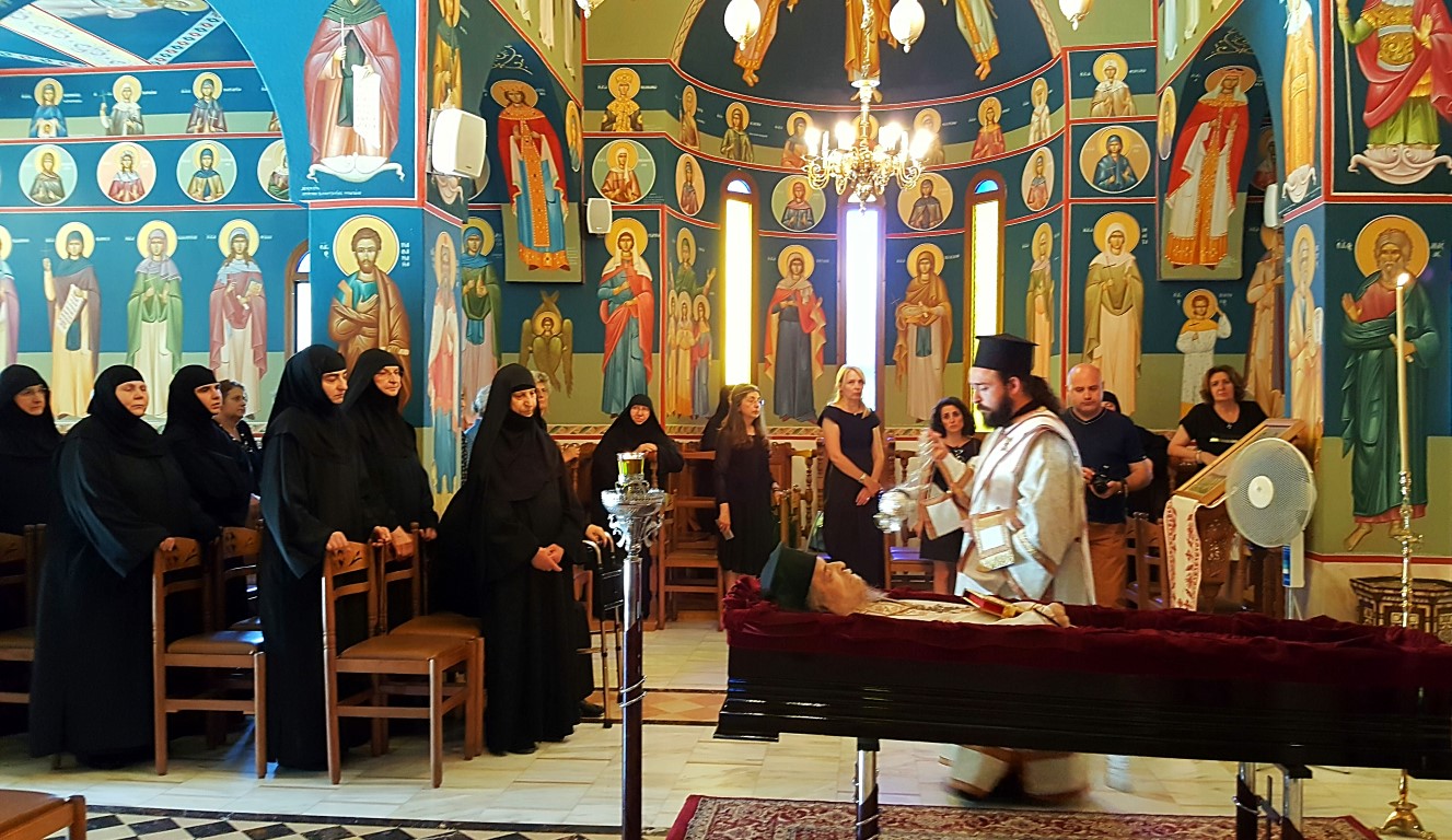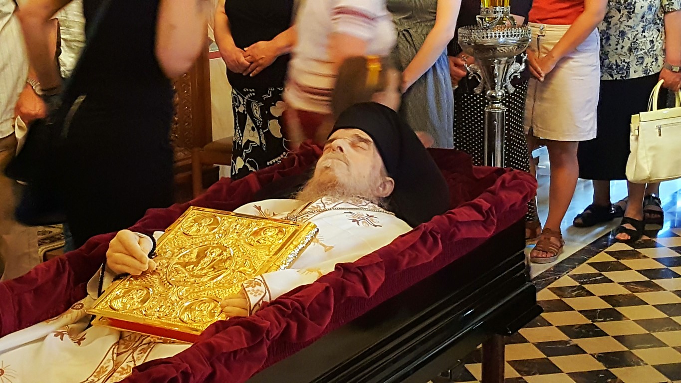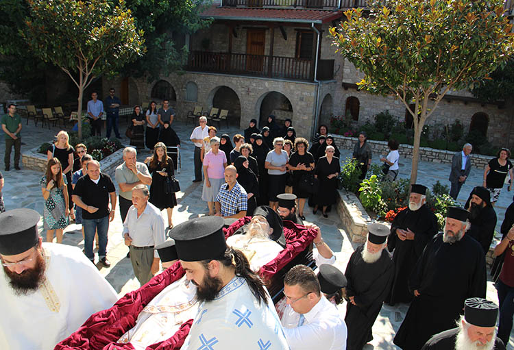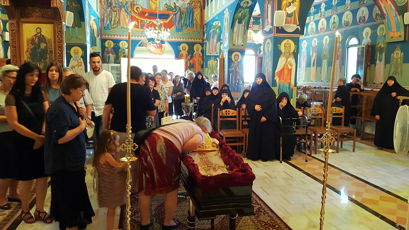 Πλήθος πιστών προσέρχεται από νωρίς το απόγευμα της Τετάρτης στην Ιερά Μονή Αγίων Θεοδώρων προκειμένου να αποχαιρετήσει τον γέροντα Γεώργιο.