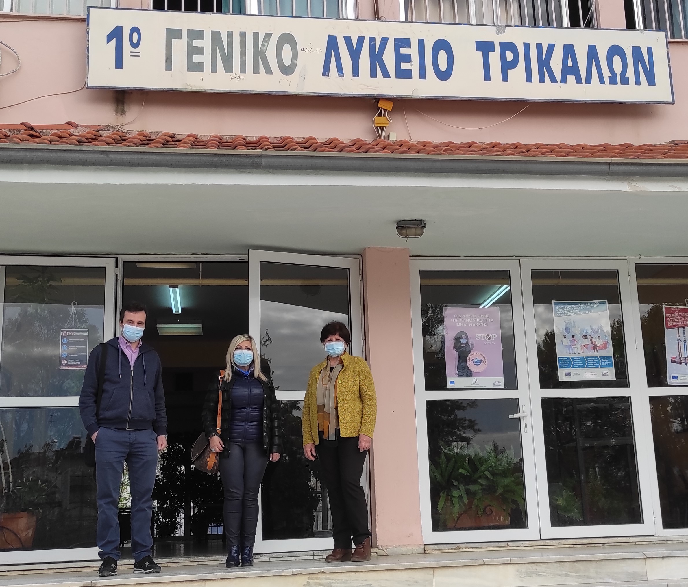 Επίσκεψη πραγματοποίησε η Διευθύντρια Δευτεροβάθμιας Εκπαίδευσης κα. Ελένη – Μαρίνα Ξυνοπούλου και ο Προϊστάμενος Εκπαιδευτικών Θεμάτων κ. Νικόλαος Παπακωνσταντίνου στο 1ο ΓΕΛ και στο 1ο ΕΠΑΛ Τρικάλων σήμερα το πρωί με αφορμή την επιστροφή των μαθητών στις αίθουσες.