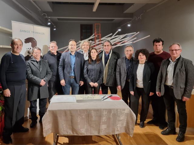Παρόντες, ο Δήμαρχος Τρικκαίων Δημήτρης Παπαστεργίου και η πρόεδρος του Μουσείου, κ. ΝΙκ. Μπρουζούκη, μαζί με τα μέλη του Συμβουλίου και εργαζόμενους/ες στο μουσείο.