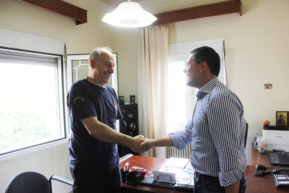 Κατά την διάρκεια της επίσκεψής του στην Πυροσβεστική ο υποψήφιος βουλευτής ευχαρίστησε το προσωπικό για την διαχρονική αυταπάρνηση που δείχνει στην εκτέλεση του καθήκοντος και ενημερώθηκε για τα προβλήματα που αντιμετωπίζει. Τόνισε πως αποτελεί πρώτη προτεραιότητα η επίλυσή τους, ώστε και το προσωπικό να διατρέχει τον μικρότερο δυνατό κίνδυνο, αλλά και να μπορεί να προσφέρει τις καλύτερες δυνατές υπηρεσίες στους πολίτες.