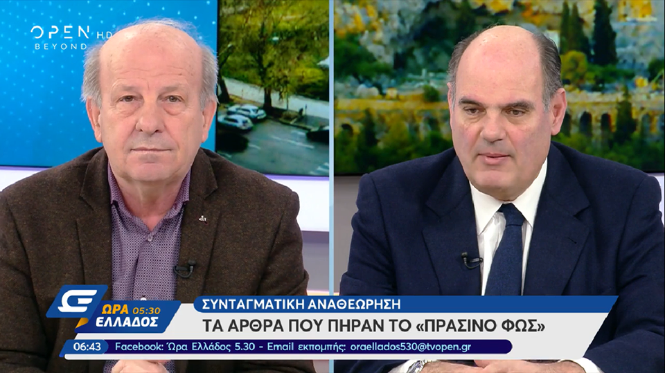 Σε πολιτική συζήτηση στο OPEN TV, στην εκπομπή «Ώρα Ελλάδος 5.30» με την Αμαλία Κάντζου και τον Βαγγέλη Γιακουμή, βρέθηκε το πρωί της Παρασκευής, 15 Φεβρουαρίου, ο βουλευτής Τρικάλων του ΣΥ.ΡΙΖ.Α Χρήστος Σιμορέλης. Η συζήτηση εξελίχθηκε γύρω από τα σημαντικά θέματα της επικαιρότητας, όπως η Συνταγματική Αναθεώρηση και η προστασία της Πρώτης Κατοικίας.