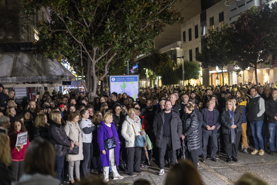 Βουβό “αντίο” στα τρία δικά τους κορίτσια, την Αναστασία, τη Θώμη και τη Χρύσα, αλλά και στα υπόλοιπα αδικοχαμένα παιδιά του σιδηροδρομικού δυστυχήματος των Τεμπών, είπαν το βράδυ της Τρίτης οι Τρικαλινοί.