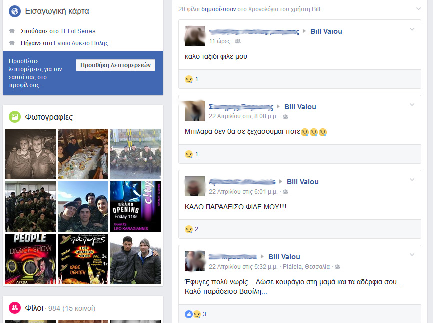 Οι φίλοι του νεαρού παιδιού που έχασε τη ζωή σε τροχαίο τα ξημερώματα του Σαββάτου τον αποχαιρετούν μέσα από τη σελίδα του στο facebook…