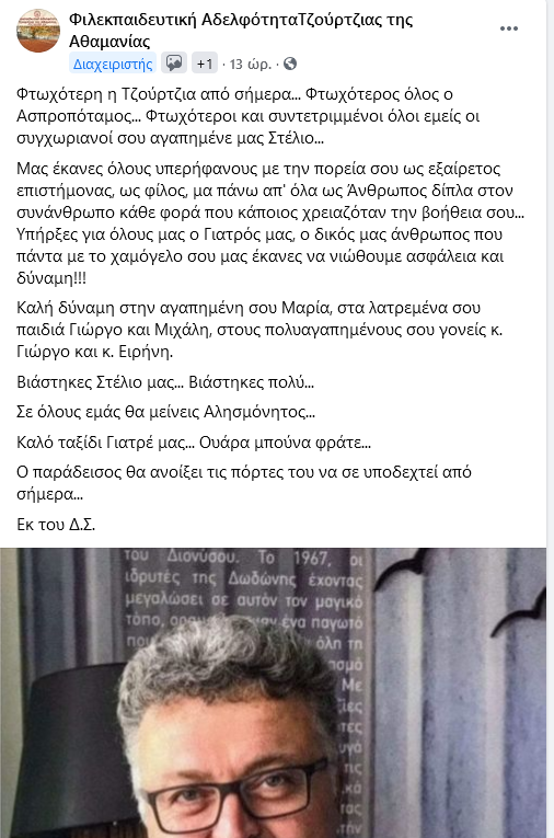 Οι άνθρωποι που τον γνώρισαν και τον αγάπησαν μέσα στη μακρά διαδρομή του, εκφράζουν τη οδύνη τους. Χαρακτηριστικότερη ίσως η ανάρτηση της Φιλεκπαιδευτικής Αδελφότητας Τζούρτζιας Ασπροποτάμου, του χωριού καταγωγής του, που του γράφουν “Ουάρα μπούνα φράτε” στα βλάχικα: