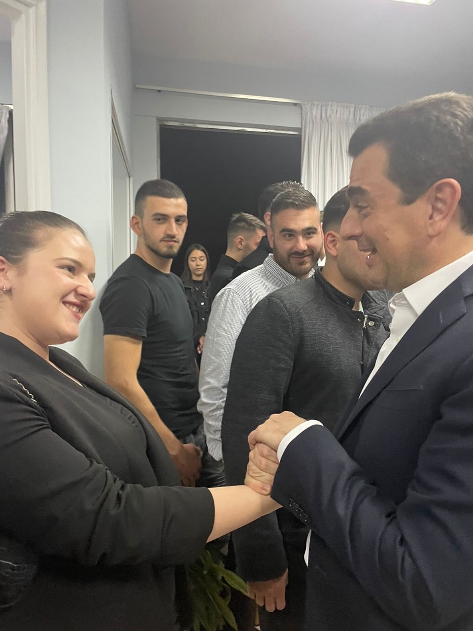 Ακολούθως συνάντησε νέες και νέους μέλη της ΟΝΝΕΔ και της ΔΑΠ – ΝΔΦΚ , καθώς επίσης και με μέλη της τοπικής ΔΕΕΠ. Μίλησαν για τη μεγάλη μάχη των Ευρωεκλογών και για το σημαντικό διακύβευμα για την Ελλάδα. «Στις 9 Ιουνίου δίνουμε ακόμα μια μεγάλη εθνική και ευρωπαϊκή μάχη. Στις 9 Ιουνίου θα γράψουμε μια νέα σελίδα. Η ψήφος για τις Ευρωεκλογές είναι ψήφος ευθύνης για την Ελλάδα και την Ευρώπη, για το κοινό μας μέλλον. Η Νέα Δημοκρατία είναι η παράταξη που υπό τη διακυβέρνηση του Κυριάκου Μητσοτάκη αποτελεί ένα από τα μεγαλύτερα κεντροδεξιά κόμματα στην Ευρώπη. Παρούσα στα κέντρα λήψης αποφάσεων για την ήπειρό μας, πάντα στην σωστή πλευρά της ιστορίας. Ας αξιοποιήσουμε την ψήφο μας με τον καλύτερο τρόπο».