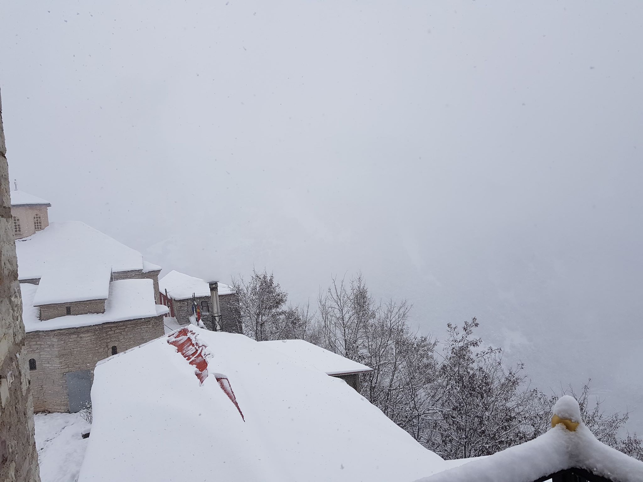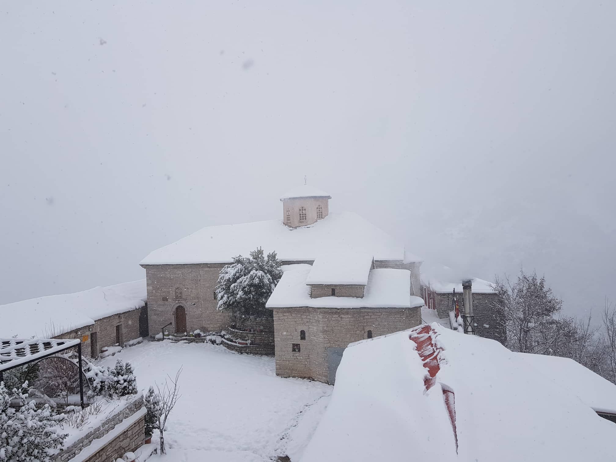 Αποκομμένη από τον «έξω κόσμο» το τελευταίο διήμερο η ιστορική Μονή στις κορυφές των Αγράφων. Όπως καταγράφει το trikalavoice.gr η Μονή Παναγίας Σπηλιάς έχει σκεπαστεί από πέπλο χιονιού που ξεπερνάει σε ύψος τους 30 πόντους, ενώ η θερμοκρασία είναι σταθερά υπό του μηδενός.