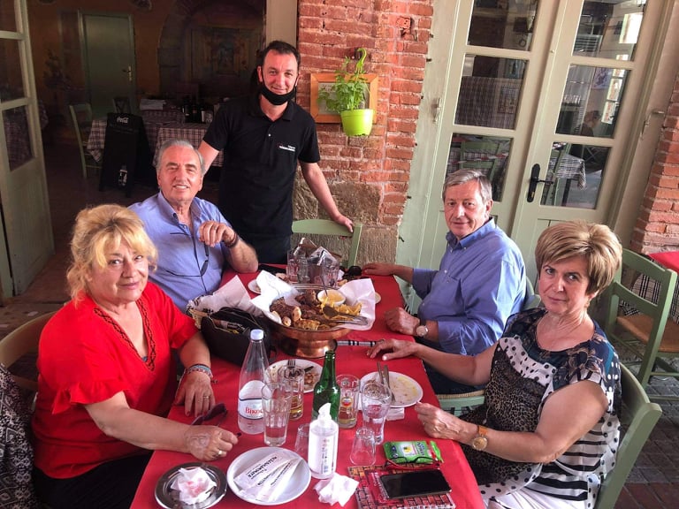 Φιλοξενούμενος του ραδιοφωνικού παραγωγού και στυλοβάτη της παραδοσιακής μουσικής (κάθε πρωί στο ράδιο ΖΥΓΟΣ) Άγγελου Βλάχου και της συζύγου του, γευμάτισαν όλοι μαζί στα “Μεζεδοκαμώματα”. Παραδοσιακά φυσικά…