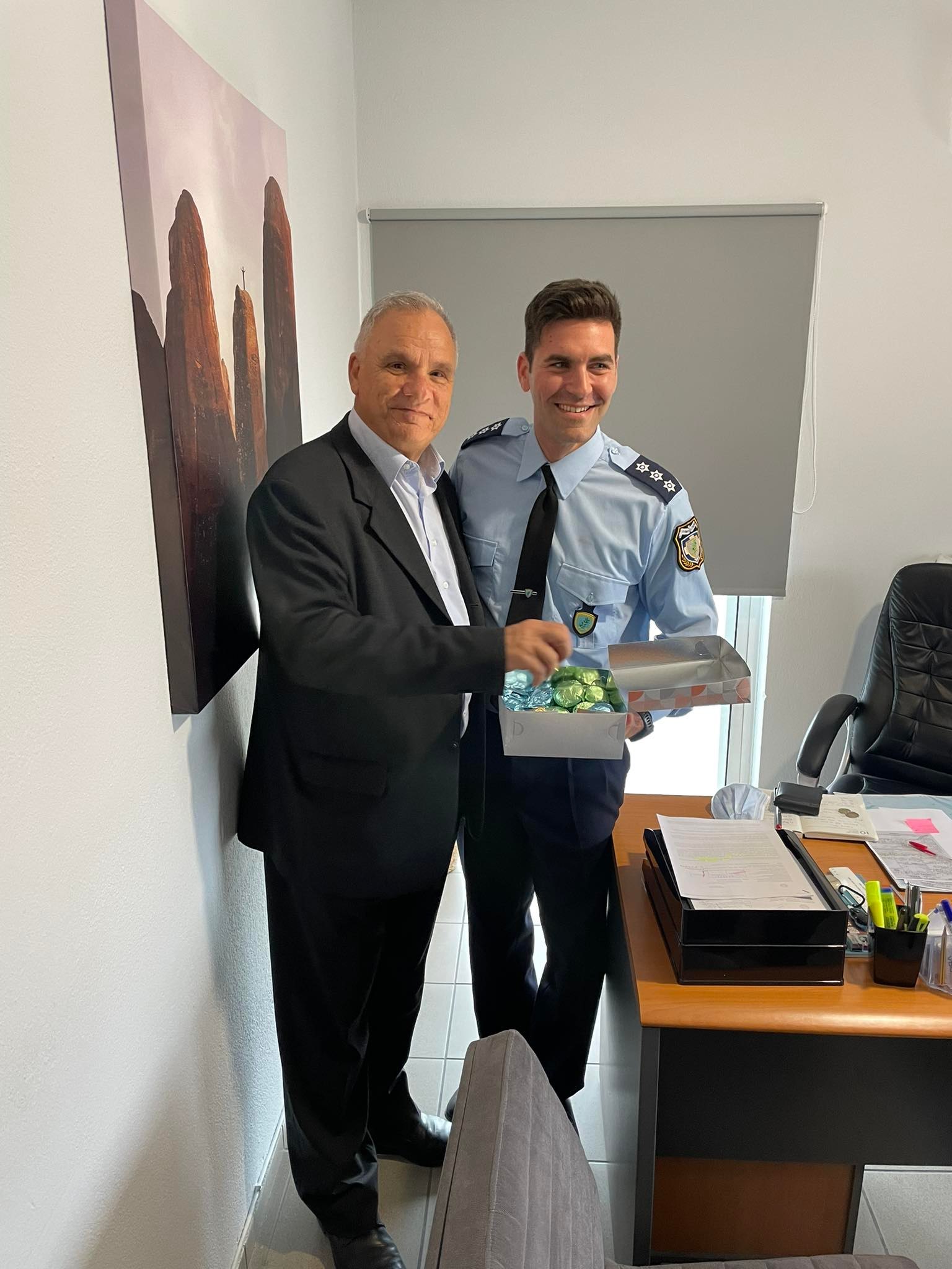 Τον Ηλία Βλαχογιάννη υποδέχτηκαν εγκάρδια ο Αστυνομικός Διευθυντής Δημήτρης Μήτραινας ,ο Αν. Διευθυντής Αστ. Διευθυντής Θανάσης Καπάς, τα στελέχη και το προσωπικό της Υπηρεσίας. Ο Ηλίας Βλαχογιάννης με ιδιαίτερη χαρά χαιρέτισε τους πρώην συναδέλφους του και τους συγχάρηκε για το δύσκολο και κρίσιμο έργο που επιτελούν. Στη συνέχεια επισκέφθηκε τα γραφεία των τοπικών Ενώσεων Αστυνομικών Υπαλλήλων και Διεθνούς Ένωσης Αστυνομικών (IPA),με τους οποίους συνομίλησε για τα προβλήματα που τους απασχολούν. “Ως πρώην συνάδελφος, Πρόεδρος της Πανελλήνιας Ομοσπονδίας Αξιωματικών Αστυνομίας, Νομάρχης και Βουλευτής , γνωρίζω απο πρώτο χέρι τα προβλήματα της Υπηρεσίας και του Προσωπικού. Ήμουν, είμαι και θα είμαι στο πλευρό σας, στα δίκαια αιτήματα σας. Ως Βουλευτής θα συνεργαστώ στην επόμενη Βουλή και Κυβέρνηση μαζί σας, για την εξεύρεση ικανοποιητικών λύσεων στα προβλήματά σας”, τόνισε μεταξύ άλλων ο Ηλίας Βλαχογιάννης.