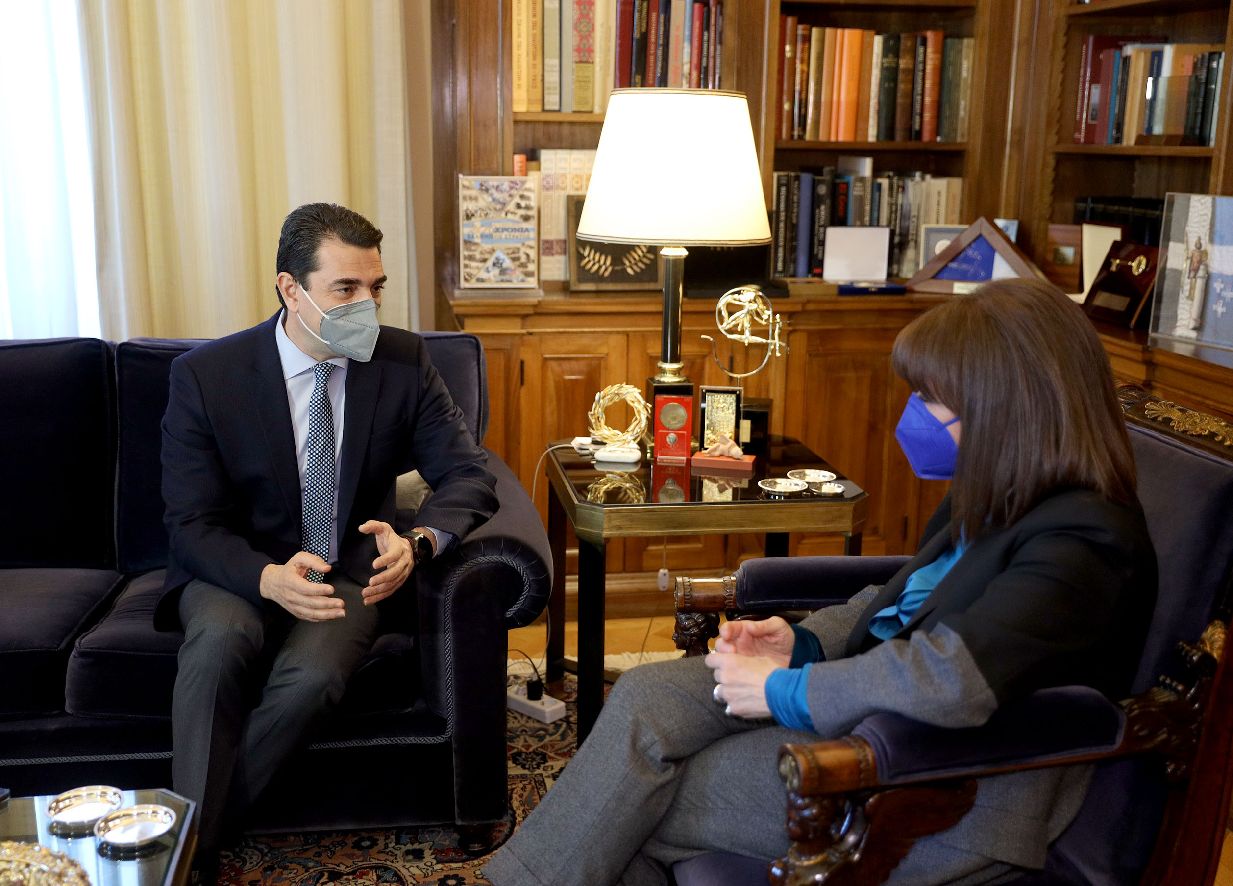 Ο Υπουργός Περιβάλλοντος και Ενέργειας, Κώστας Σκρέκας, συναντήθηκε με την Πρόεδρο της Δημοκρατίας, Κατερίνα Σακελλαροπούλου, στο Προεδρικό Μέγαρο.