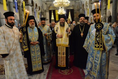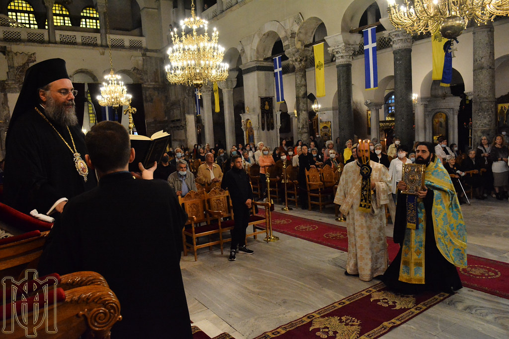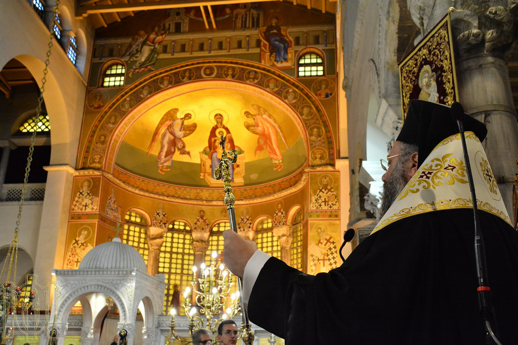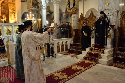 Εἰς τὴν Ὑποδοχὴν καὶ τὴν μετ΄ αὐτὴν τελεσθεῖσαν ἐπίσημον Δοξολογίαν, ἐχοροστάτησεν κατόπιν σεπτῆς εὐχῆς καὶ κανονικῆς ἀδείας τοῦ Παναγιωτάτου Μητροπολίτου Θεσσαλονίκης κ. Ἀνθίμου, ὁ Σεβασμιώτατος Μητροπολίτης Τρίκκης καὶ Σταγῶν κ. Χρυσόστομος, ἐνῶ ἐν συνεχεία τελέσθηκε ἠ ἀκολουθία τοῦ Ὄρθρου τῆς Μεγάλης Τρίτης, συμφώνως μὲ τὸ ἀρχαίο τυπικὸν τῆς Μεγάλης Ἑβδομάδος τοῦ ἁγίου Δημητρίου καὶ ὁ Παρακλητικὸς Κανὼν πρὸς τὸν Μεγαλομάρτυρα.