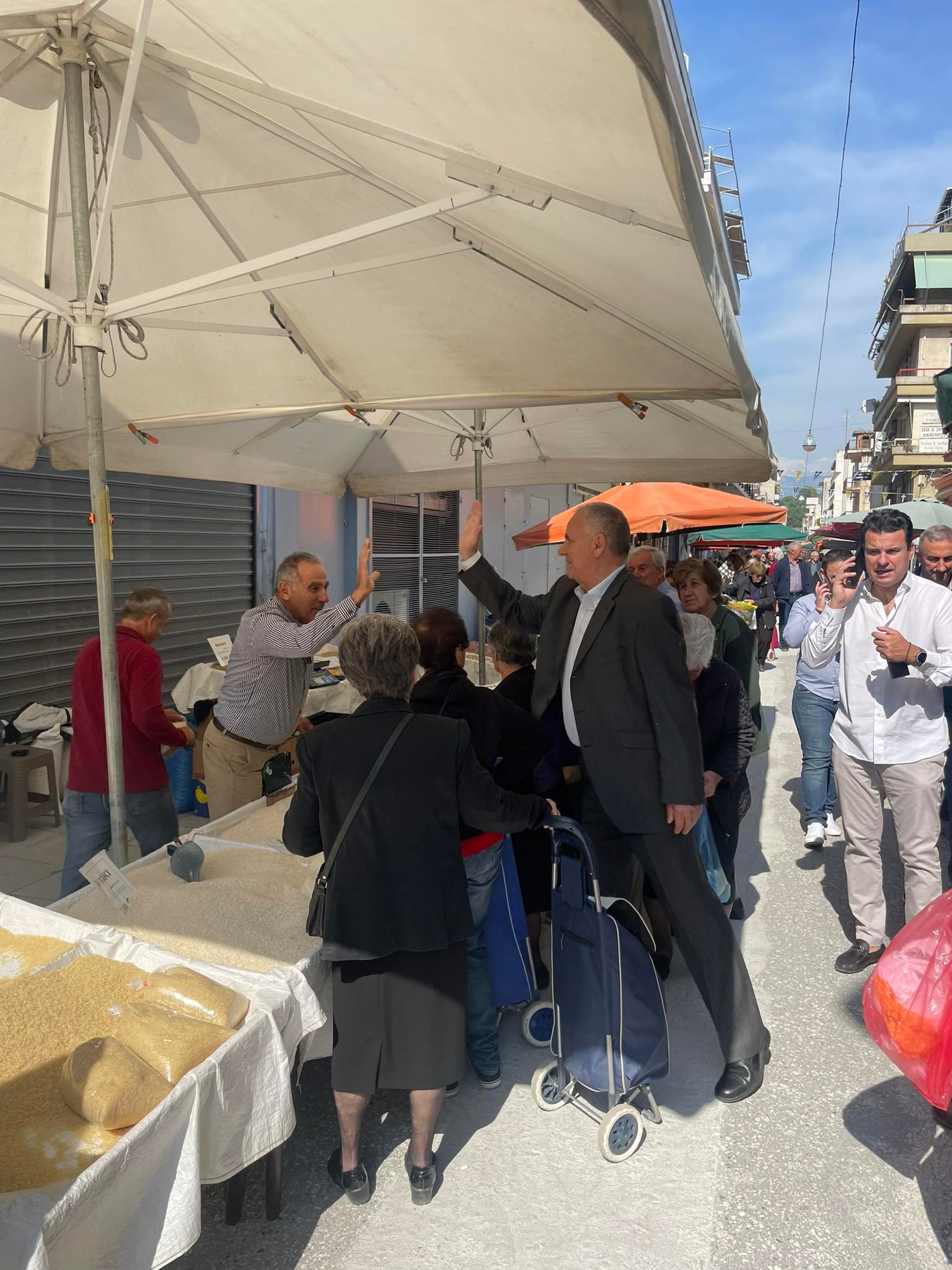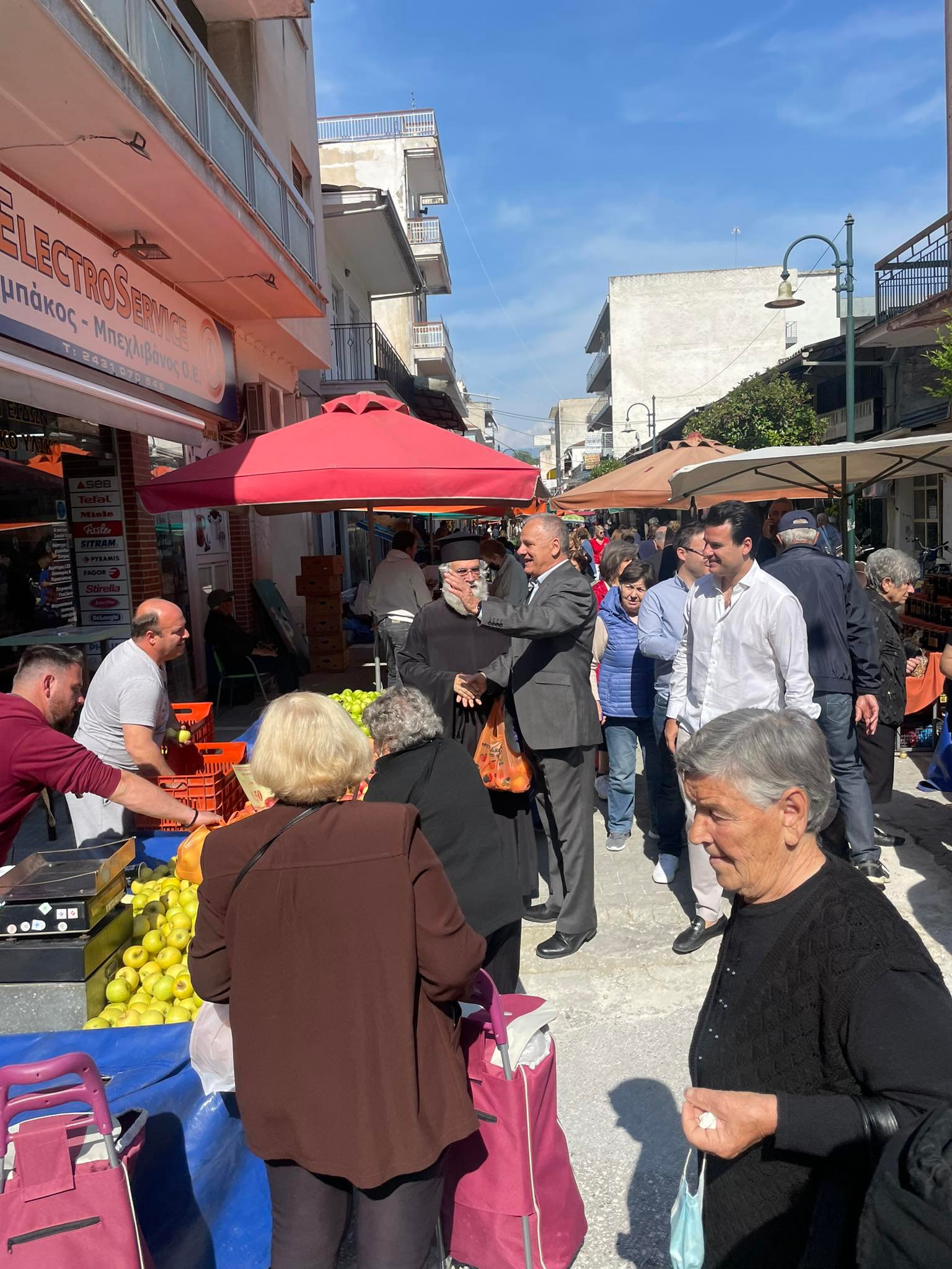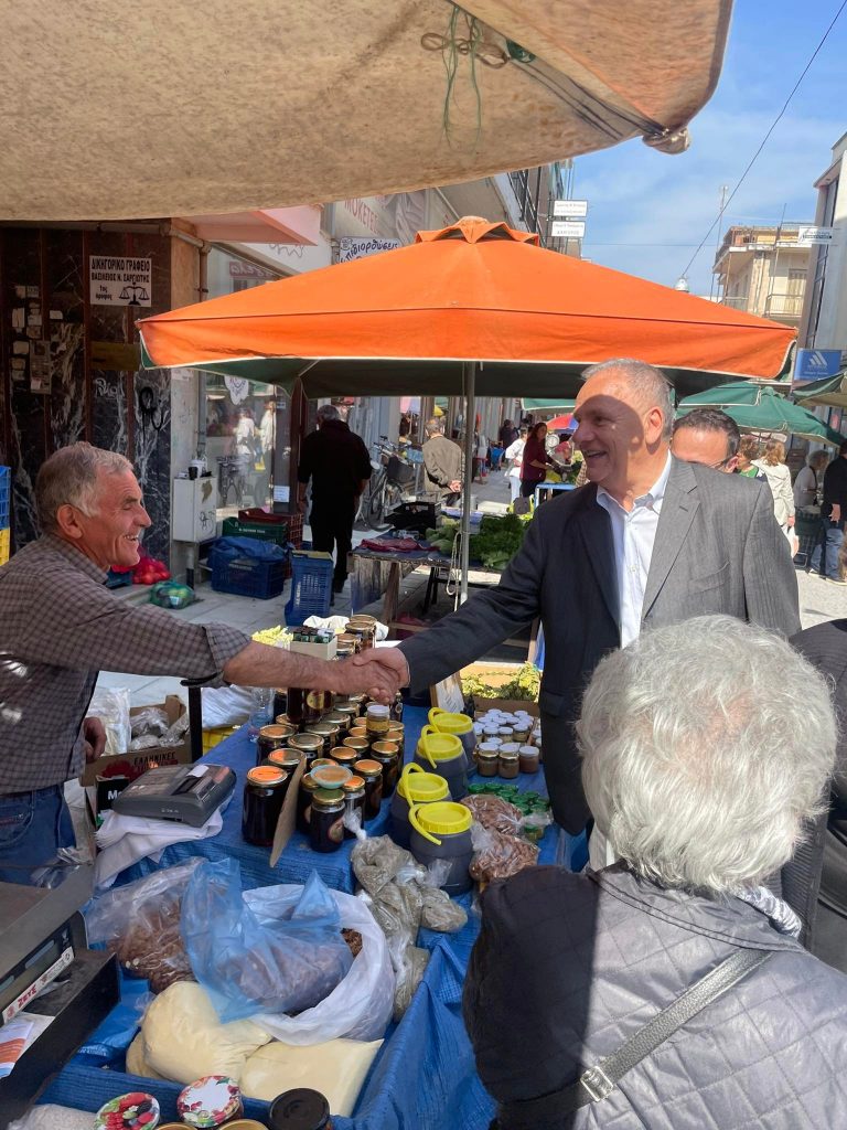 Με πωλητές, παραγωγούς και πολίτες στη λαϊκή αγορά των Τρικάλων, συνομίλησε ο πρ. Νομάρχης-Βουλευτής και εκ νέου υποψήφιος της Νέας Δημοκρατίας Ηλίας Βλαχογιάννης.