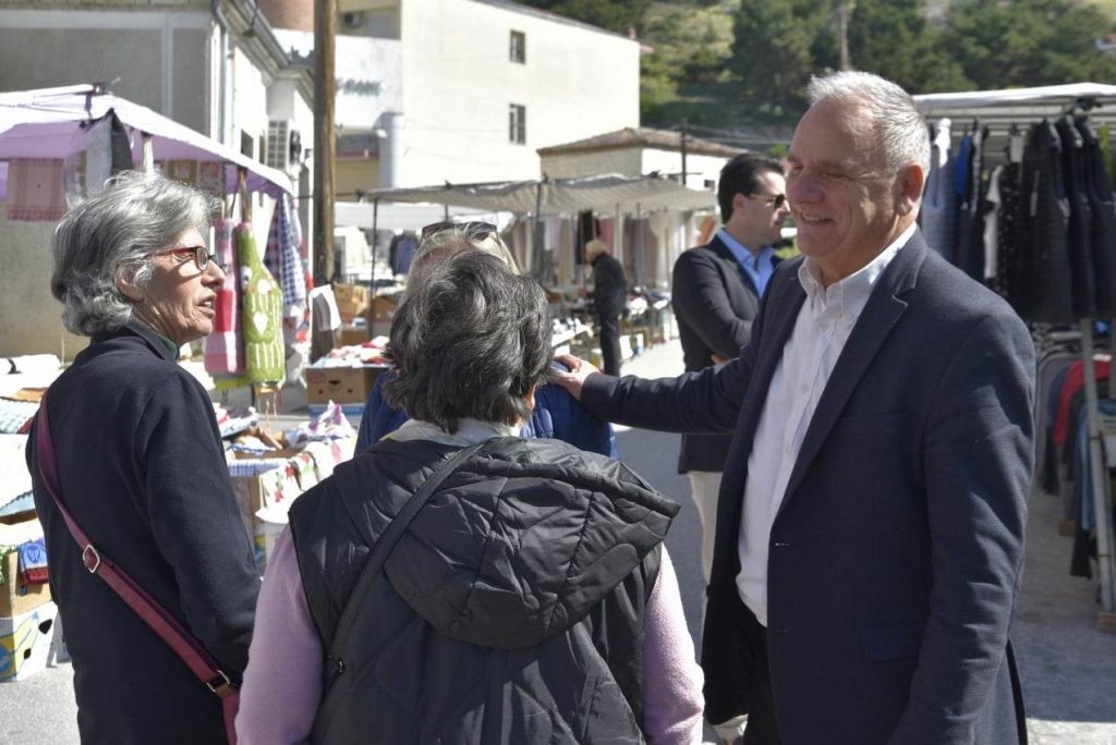 Ο κ. Βλαχογιάννης συνομίλησε με πωλητές, παραγωγούς και επισκέπτες στην αγορά, για τα προβλήματα που τους απασχολούν.