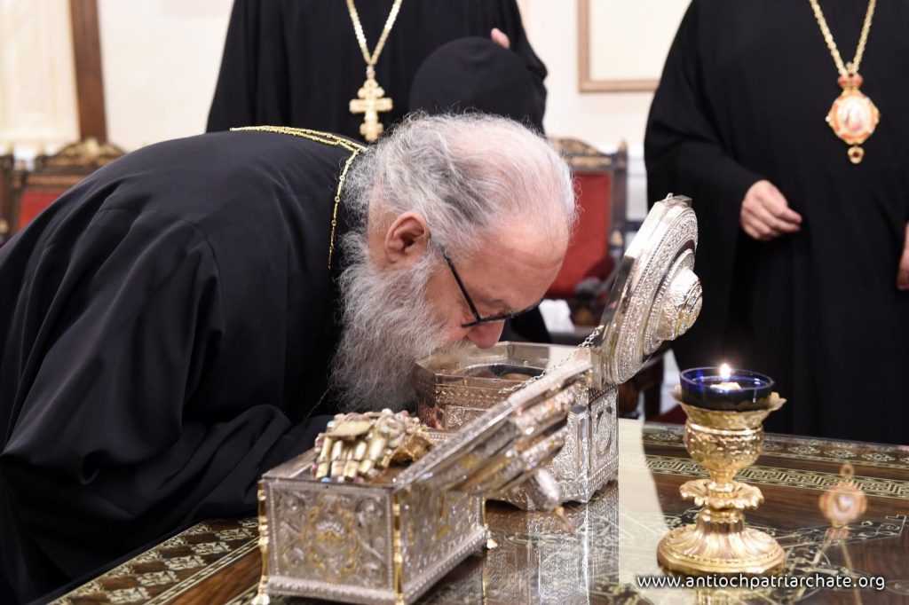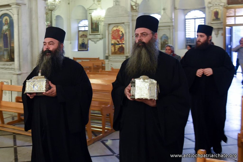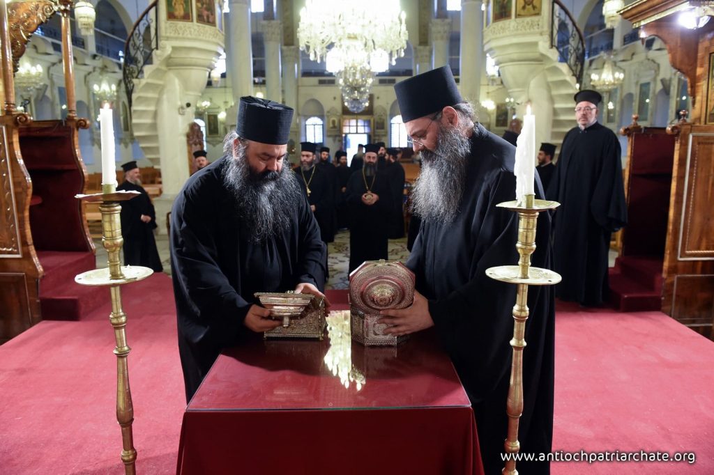 Όπως καταγράφει το trikalavoice.gr ο κ. Θεόκλητος και η συνοδεία αυτού κόμισαν στην Πατριαρχική Οικία του Πατριάρχου Αντιοχείας Ιωάννου, στη Δαμασκό της Συρίας, Τίμια Λείψανα των Αγίων Ιωάννου του Χρυσοστόμου και Παντελεήμονος. Ο κ. Ιωάννης προσκύνησε τα Τίμια Λείψανα, παρόντων των Επισκόπων Ρωμανού (Χένα), Μωυσή (Χούρι), Αρσανίου (Νταχντάλ) και Μωυσή (Κεστρέλ), επικεφαλής του Αβαείου του Μπελμάντ, Πατριαρχικού Αρχιμανδρίτη Γεώργιου.