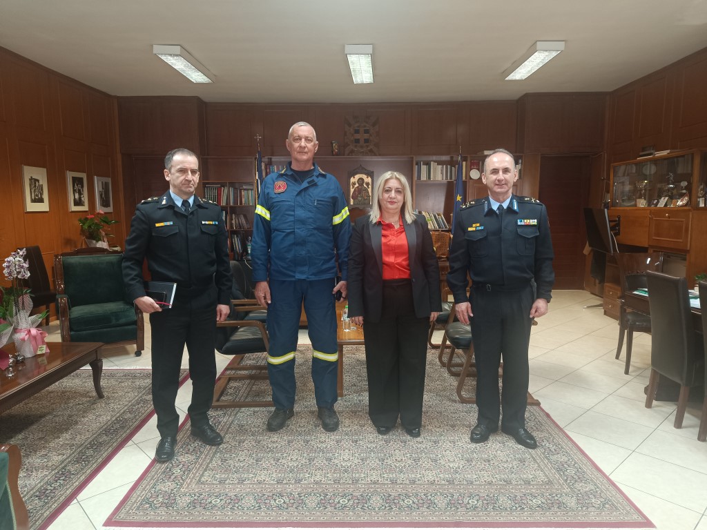 Στο επίκεντρο της συζήτησης η άψογη και στενή συνεργασία της Π.Ε. Τρικάλων με την Πυροσβεστική Υπηρεσία όσον αφορά την Πολιτική Προστασία.