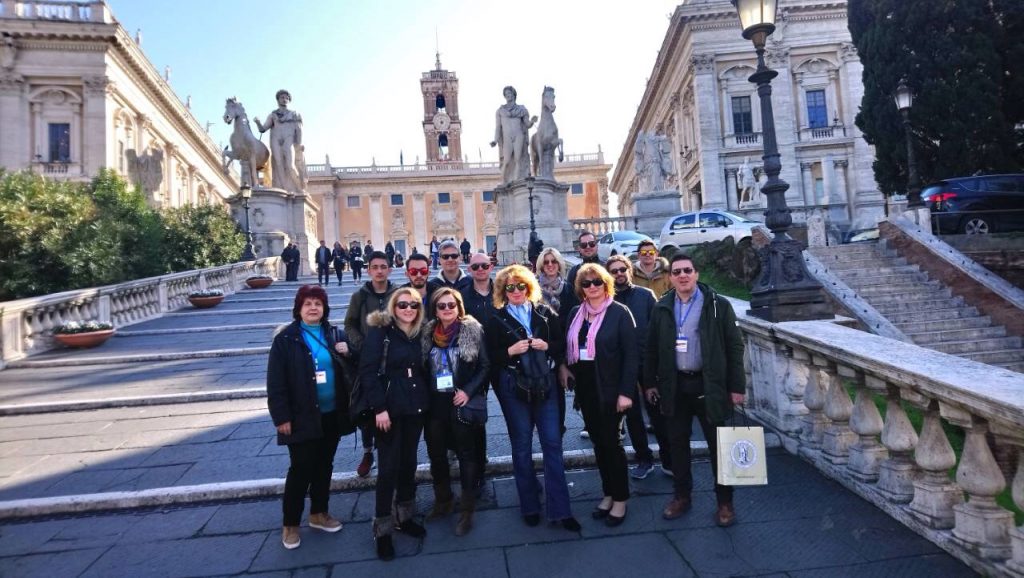 Στα έδρανα του Δημοτικού Συμβουλίου της «αιώνιας πόλης» βρέθηκαν καθηγητές και σπουδαστές του 1ου Εσπερινού ΕΠΑΛ Τρικάλων στα πλαίσια του προγράμματος ΚΑ1 ERASMUS+ με τίτλο: «ΕΠΙΧΕΙΡΗΜΑΤΙΚΟΤΗΤΑ ΓΙΑ ΟΛΕΣ ΤΙΣ ΗΛΙΚΙΕΣ – ΜΙΑ ΠΡΟΚΛΗΣΗ ΓΙΑ ΤΗΝ ΕΚΚΙΝΗΣΗ Ή ΤΗΝ ΕΠΑΝΕΚΚΙΝΗΣΗ ΤΗΣ ΕΠΑΓΓΕΛΜΑΤΙΚΗΣ ΖΩΗΣ«Η συνάντηση με τον προσωπικό σύμβουλο της Δημάρχου Virginia Razzι κ.Emmanuelle Falasca,άκρως ενδιαφέρουσα και εποικοδομητική καθώς και τιμητική αφού δόθηκε η δυνατότητα σε όλους να αφουγκραστούν τον παλμό των συνεδριάσεων της αίθουσας «Ιούλιος Καίσαρας» στο Καπιτώλιο της Ρώμης .Οι συνοδοί καθηγητές κ.Χαντζιάρας Κώστας ,Λάσκος Στέλιος αλλά και οι σπουδαστές ξεναγήθηκαν σε όλο το Καπιτώλιο από τον κ.Falasca γνώστη της Ελληνικής γλώσσας αλλά και λάτρη της Ελληνικής Ιστορίας και του Πολιτισμού Ο υπεύθυνος της αποστολής κ. Χαντζιάρας Κώστας απέδωσε ένα αναμνηστικό της πόλης των Τρικάλων εστιάζοντας σε κάποιες καινοτομίες της πόλης των Τρικάλων με την πόλη που κράτησε κάποτε τα σκήπτρα της παγκόσμιας ιστορίας και που και σήμερα είναι γεμάτη μεγαλοπρέπεια και ομορφιά.Αναμνηστικό δόθηκε και από την κα Κούζα Χρύσα εθελόντρια της ΦΛΟΓΑΣ του Συλλόγου Γονέων Παιδιών με Νεοπλασματικές ασθένειες,σταλμένο από το τοπικό παράρτημα. Η κα Κούζα ενημέρωσε για το σκοπό, το έργο και την προσφορά του Συλλόγου Πανελλαδικά,γνωρίζοντας τις ευαισθησίες της Δημάρχου σε θέματα εθελοντισμού και προσφοράς. Μεταξύ των σπουδαστών βρέθηκε και η κα Παππά Μαρία Προϊσταμένη Α του Ελληνικού Ερυθρού Σταυρού παραρτήματος Τρικάλων η οποία με την σειρά της ενημέρωσε για το έργο του τοπικού παραρτήματος Ελληνικού Ερυθρού Σταυρού. Εντυπωσιασμένοι αλλά και απογοητευμένοι ταυτόχρονα στο μυαλό όλων ήρθε η φράση του Οράτιου “Graecia capta ferum v ictorem cepit et artis intulit agresti Latio” (“Η κατακτημένη Ελλάδα κατέκτησε τον νικητή και έφερε τις τέχνες της στον αγροίκο Λάτιο”).