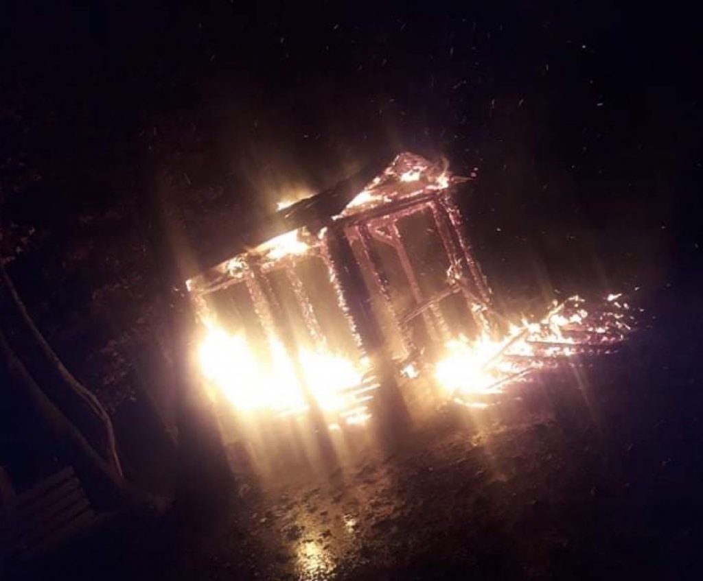 Στις φλόγες τυλίχτηκε το σπιτάκι της πυροσβεστικής στο 40 χλμ. της ε.ο. Τρικάλων-Άρτας, λίγο μετά την Πύλη, στο ύψος της διασταύρωσης για Στουρναρέικα.