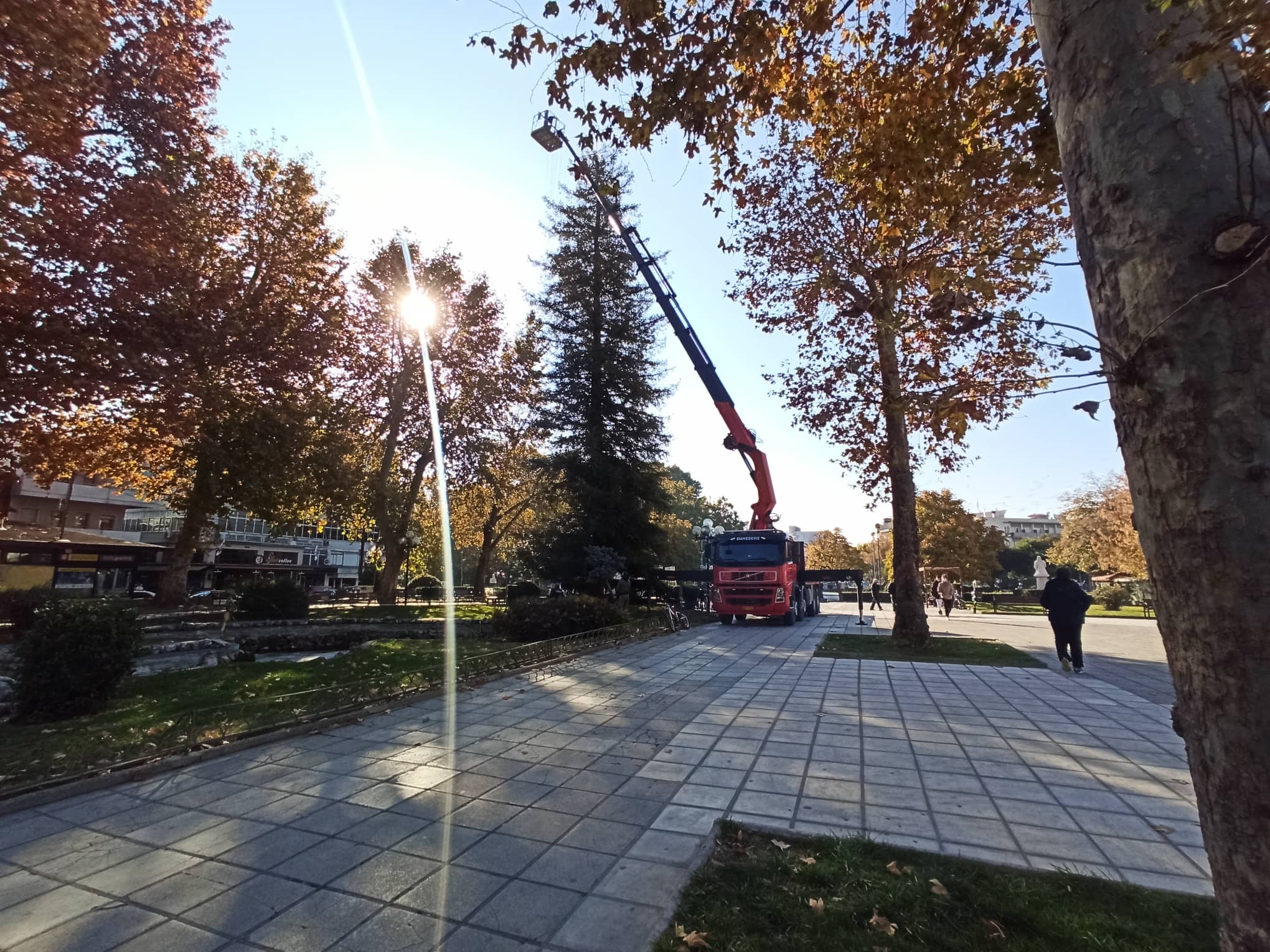 Ολοκληρώνεται ο εορταστικός διάκοσμος της πόλης των Τρικάλων.
