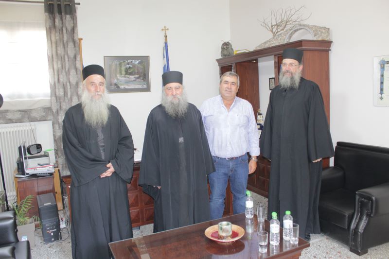 Τον Δήμαρχο Πύλης κ. Κωνσταντίνο Μαράβα επισκέφθηκε ο Καθηγούμενος της Ιεράς Μονής Αγίου Βησσαρίωνος (ΔΟΥΣΙΚΟΥ) Πατέρας Βησσαρίων συνοδευόμενος από τους Μοναχούς π. Συμεών και π. Ιγνάτιο, την Τρίτη 3 Σεπτεμβρίου στο γραφείο του στο Δημαρχείο Πύλης.