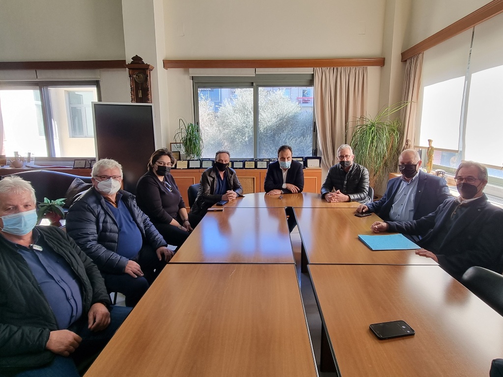 Την Πέμπτη 17 Φεβρουαρίου 2022, μέλη του ΔΣ της Ενωσης και εκπρόσωποι τρικαλινών ξενοδοχείων επισκέφθηκαν τον κ. Παπαστεργίου στο Δημαρχείο. Συζητήθηκαν και αντηλλάγησαν απόψεις για πολλά και σημαντικά θέματα, που σχετίζονται με το τουριστικό προϊόν των Τρικάλων. Κυρίως, τέθηκαν τα θέματα των έργων που γίνονται και όσων ξεκινούν το αμέσως επόμενο διάστημα στα Τρίκαλα και δη στο κέντρο της πόλης, προκειμένου και οι ξενοδόχοι να είναι ενήμεροι για αυτά.