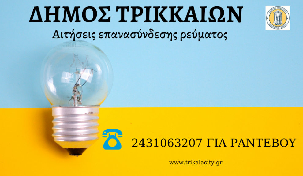 Στο πλευρό συμπολιτών για επανασύνδεση του ηλεκτρικού ρεύματος ο Δήμος Τρικκαίων. Με απόφαση του Δημάρχου Τρικκαίων, συγκροτήθηκε τριμελής επιτροπή, η οποία θα εξετάζει τις αιτήσεις τρικαλινών για την εφάπαξ παροχή ειδικού βοηθήματος σε καταναλωτές με χαμηλά εισοδήματα, οι οποίοι έχουν αποσυνδεθεί από το δίκτυο παροχής ηλεκτρικής ενέργειας λόγω ληξιπρόθεσμων οφειλών.