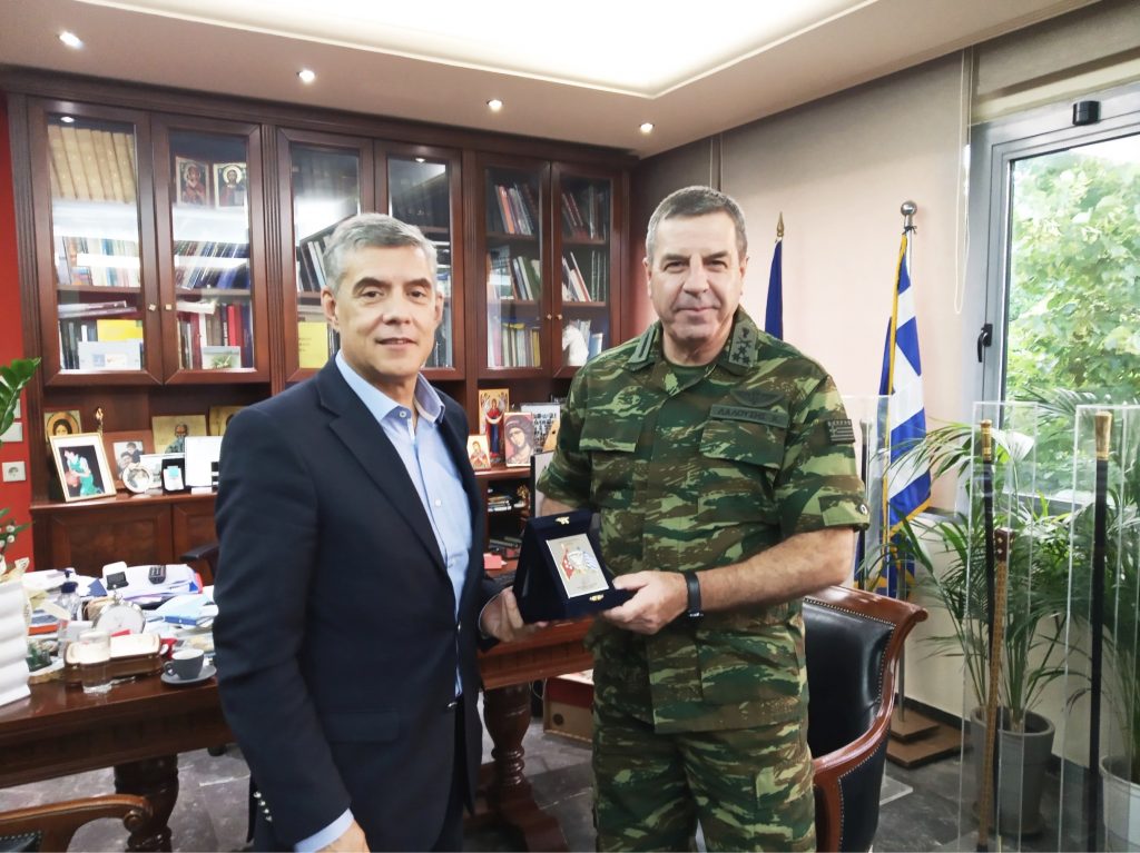 Η διαχρονική και ουσιαστική συνεργασία της Περιφέρειας Θεσσαλίας με τον Στρατό, επαναβεβαιώθηκε στη διάρκεια της συνάντησης που είχε χθες ο Περιφερειάρχης Κώστας Αγοραστός με τον Αρχηγό του Γενικού Επιτελείου Στρατού Αντιστράτηγο Χαράλαμπο Λαλούση και τον Διοικητή 1ης Στρατιάς Αντιστράτηγο Βασίλειο Παπαδόπουλο, παρουσία και του Αντιπεριφερειάρχη Νίκου Λιούπα.