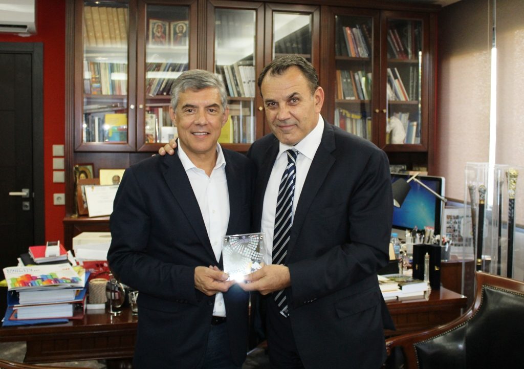 Ο κ. Παναγιωτόπουλος έδωσε στον Περιφερειάρχη αναμνηστική πλακέτα του ΥΠΕΘΑ, ενώ από την πλευρά του ο κ. Αγοραστός πρόσφερε στον Υπουργό ένα αναμνηστικό λεύκωμα με την ιστορική και πολιτιστική εξέλιξη της Θεσσαλίας στο πέρασμα των αιώνων.