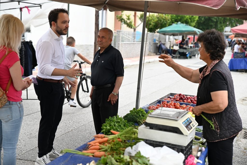 Πρώτος σταθμός της περιοδείας του Φώτη Καψάλη, η λαϊκή αγορά. Εκεί συναντήθηκε με αγρότες και παραγωγούς, ακούγοντας και καταγράφοντας τις αγωνίες που βιώνουν. Όπως ενημερώθηκε από τους παραγωγούς και τους μικροπωλητές η κίνηση έχει μειωθεί αρκετά σε σχέση με το παρελθόν κι αυτό ως ένα σημείο, οφείλεται στην οικονομική στενότητα της κοινωνίας, που στην πλειονότητα προχωρά σε περικοπές ακόμη και σε τρόφιμα.