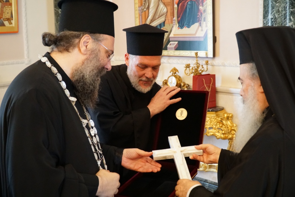 Συνεχίζεται η προσκυνηματική επίσκεψη Τρικαλινών, υπό του Μητροπολίτου Χρυσοστόμου, στα Ιεροσόλυμα. Όπως καταγράφει το trikalavoice.gr το πρωί της Τετάρτης οι προσκυνητές ανέβηκαν τον Γολγοθά κραδαίνοντας, με πρώτο τον κ. Χρυσόστομο, το Σταυρό όπως ο Χριστός. Νωρίτερα είχαν γίνει δεκτοί από τον Πατριάρχη Ιεροσολύμων Θεόφιλο με τον οποίο ο Μητροπολίτης Τρίκκης & Σταγών είχε μακρά πνευματική συζήτηση ανταλλάσσοντας στο τέλος αναμνηστικά δώρα.