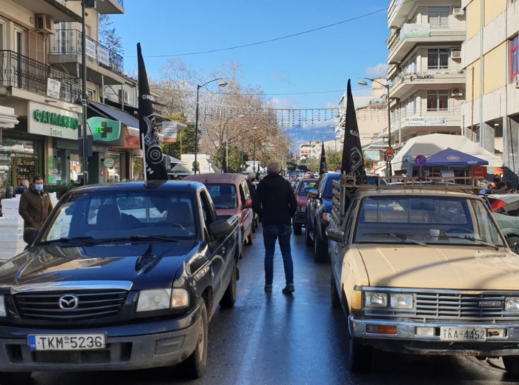 Πορεία με τα αγροτικά τους οχήματα πραγματοποίησαν το πρωί της Δευτέρας στο κέντρο των Τρικάλων οι αγρότες της Ομοσπονδίας “Άνοιξη”.
