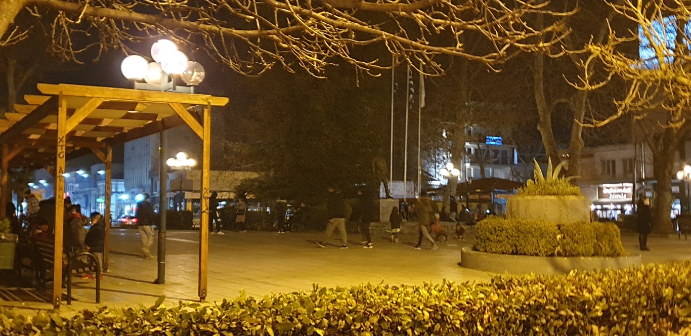 Στις πλατείες και στους πεζόδρομους της πόλης περνούν τη νύχτα πολλοί Τρικαλινοί.