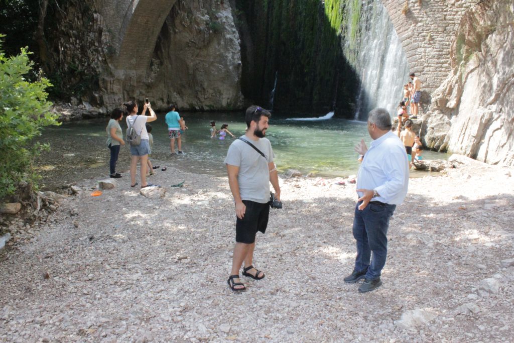 Κατά την επίσκεψη του στον χώρο, με σκοπό να δει από κοντά την εξέλιξη των εργασιών διαμόρφωσης του, απρόσμενα διαπίστωσε εικοσαμελή και πλέον ομάδα παιδιών να απολαμβάνουν την φύση, το νερό και τους καταρράκτες.