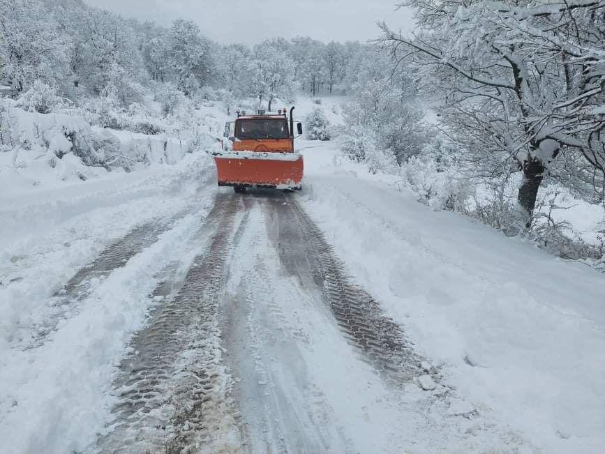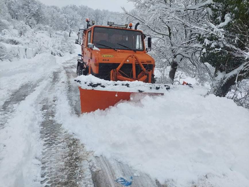 Αγώνα για να ανοίξουν το δρόμο προς την Κόρη κάνουν τα εκχιονιστικά μηχανήματα.
