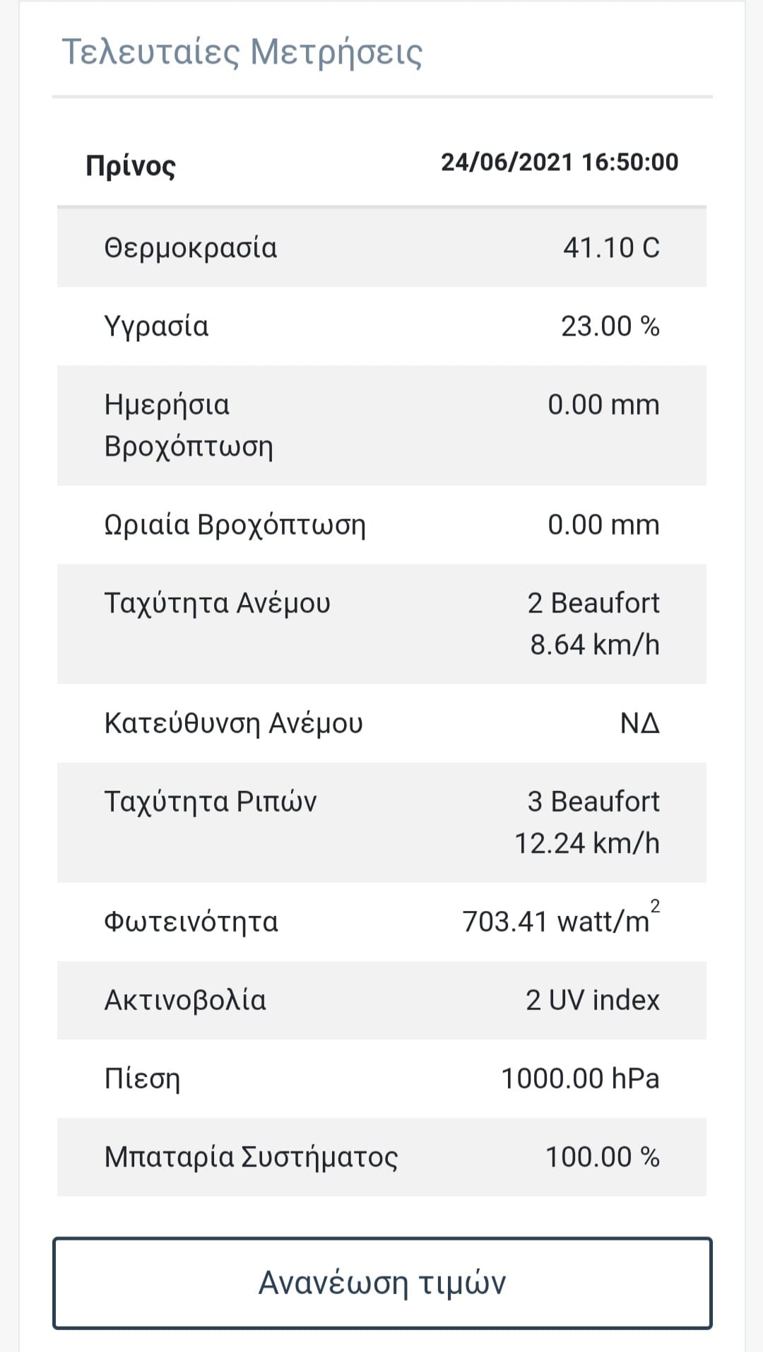 Όπως καταγράφει το trikalavoice.gr οι υψηλές θερμοκρασίες παραμένουν και δυστυχώς σύμφωνα με τα έως τώρα δεδομένα φαίνεται να παραμένουν τουλάχιστον μέχρι την ερχόμενη Τετάρτη!!!… Χθες το μεσημέρι ο τοπικός μετεωρολογικός σταθμός του Πρίνου Τρικάλων κατέγραψε θερμοκρασία ρεκόρ για φέτος (… μέχρι το επόμενο!!!) 41,1 °C.