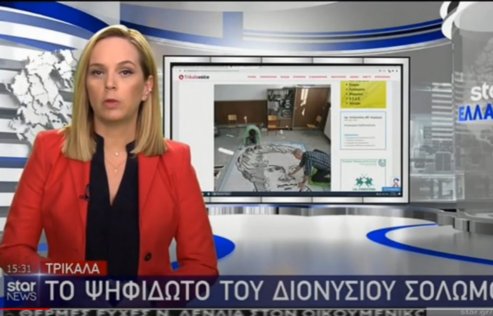 Χαρακτηριστικά την Παρασκευή το δελτίο ειδήσεων του STAR Channel με την Τασούλα Παπανικολάου φιλοξένησε το ρεπορτάζ μας για το γιγάντιο ψηφιδωτό του εθνικού μας ποιητή Διονυσίου Σολωμού: