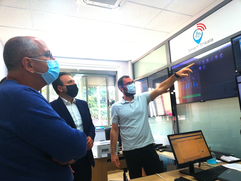 Ο Παπαστεργίου ξενάγησε τον κ. Amrani στο control room του Smart Trikala, με εμπεριστατωμένη ανάλυση των δράσεων από τον ειδικό συνεργάτη του Δήμαρχου Τρικκαίων κ. Γ. Χρυσόμαλλο.