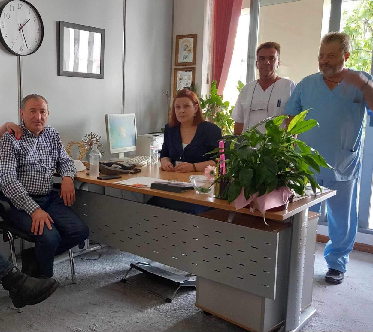 Επισκέφτηκε το Νοσοκομείο Τρικάλων, ασφαλώς, όπου ενημερώθηκε από τον διοικητή Κώστα Γρηγορίου και τον Ηλία Τσιμπίδα εκ μέρους των εργαζομένων για το πως ανταποκρίνεται το νοσηλευτικό μας ίδρυα στην πίεση των ημερών. Τους συνεχάρη για την άριστη ως τώρα λειτουργία και έθεσε την Ομοσπονδία στη διάθεσή τους.