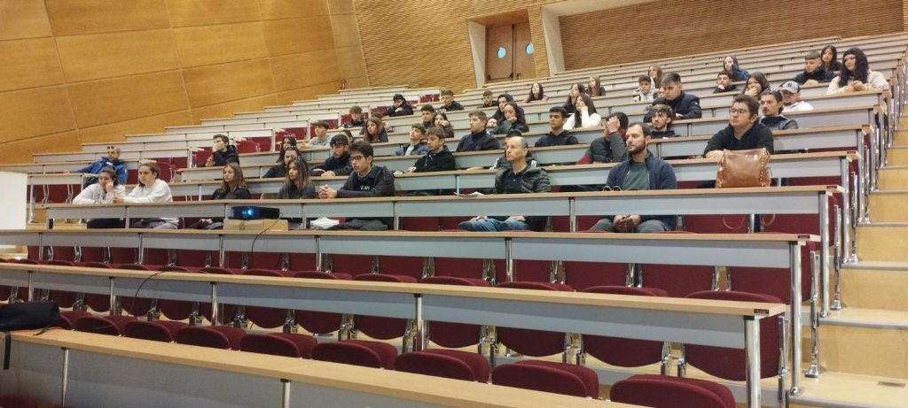 Κατά την επίσκεψή μας, αρχικά η Αναπληρώτρια καθηγήτρια κα Αλεξάνδρα Μπεκιάρη παρουσίασε το Τμήμα στο αμφιθέατρο, μιλώντας μας για τους στόχους, τη διδασκαλία, τις έρευνες που πραγματοποιούνται στο Τμήμα, τα προγράμματα ERASMUS καθώς και θέματα φοιτητικής ζωής και τη σχέση του Τμήματος με τη Διεθνή Επιστημονική κοινότητα. Ιδιαίτερο ενδιαφέρον είχε για τους μαθητές μας η αναφορά στη διαφορά μετάδοσης της γνώσης μεταξύ της Δευτεροβάθμιας και Τριτοβάθμιας Εκπαίδευσης.