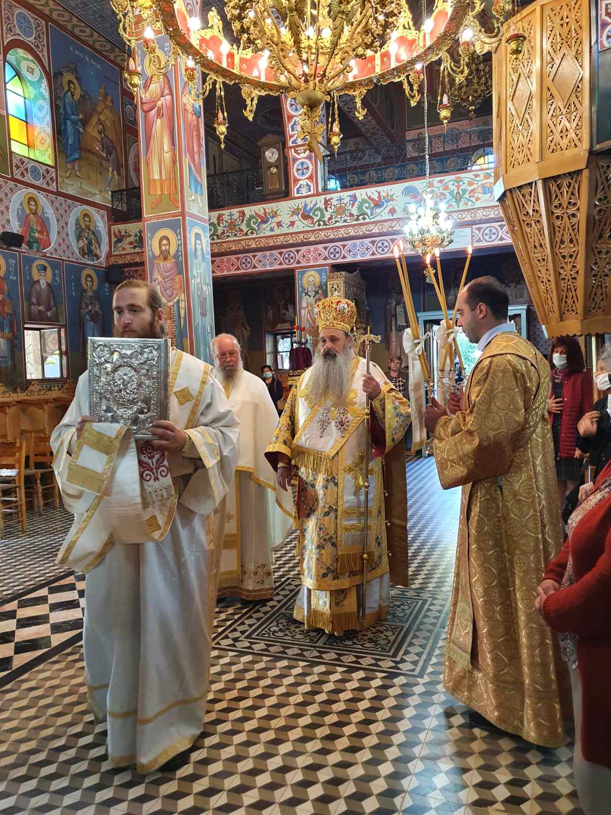 Στον Ιερό Ναό Αγίου Γεωργίου Χρυσομηλιάς λειτούργησε την Κυριακή ο Μητροπολίτης Σταγών και Μετεώρων Θεόκλητος.