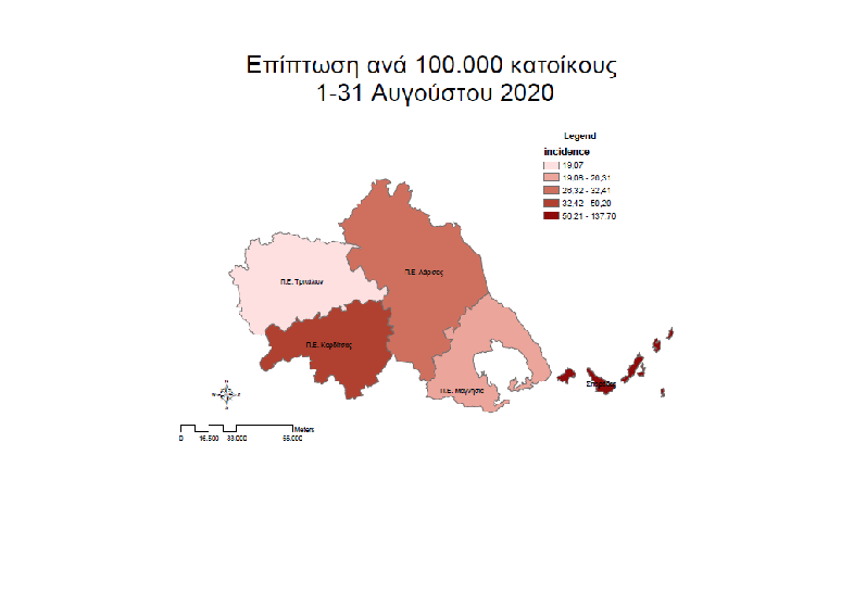 Τα στοιχεία που παρουσιάζονται αφορούν περιστατικά από την επιδημιολογική επιτήρηση της νόσου από το COVID- 19, με βάση τα δεδομένα που έχουν δηλωθεί και καταγραφεί από την ΚΟΜΥ του ΕΟΔΥ της 5ης Υ.Π.Ε. από την 1η έως τις 31 Αυγούστου.