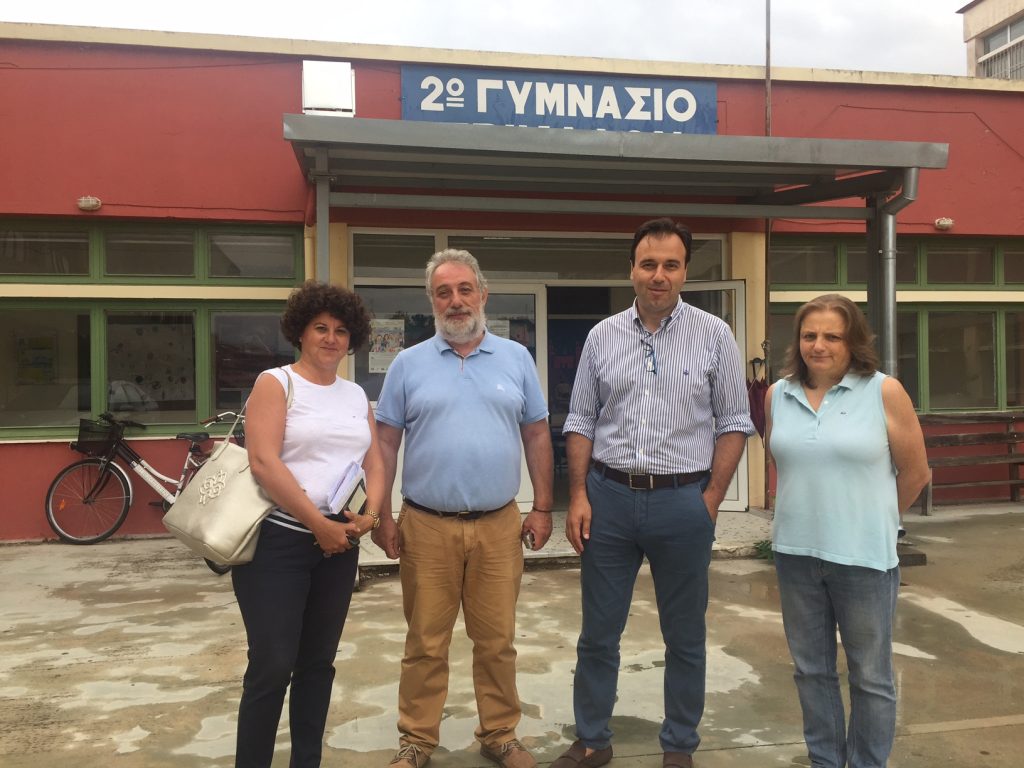 Επίσκεψη εργασίας στο 2ο Γυμνάσιο Τρικάλων πραγματοποίησε σήμερα Τετάρτη ο Δήμαρχος Τρικκαίων κ. Δ. Παπαστεργίου συνοδευόμενος από την Αντιδήμαρχο Πολιτισμού και Παιδείας του Δήμου κ. Λεβέντη Ε. Σε συνεργασία με τον διευθυντή του Σχολείου Ευάγγελο Κίτο έγινε καταγραφή των προβλημάτων, που αντιμετωπίζει το σχολείο και δρομολογήθηκε πρόγραμμα βραχυπρόθεσμων και μεσοπρόθεσμων εργασιών που απαιτούνται να γίνουν, ώστε να αναβαθμιστεί η λειτουργία του . Ο Δήμαρχος – που είναι και απόφοιτος του σχολείου- ανακοίνωσε ότι από φέτος το συγκρότημα 2ου Γυμνασίου & 2ου ΓΕΛ θα θερμανθεί με φυσικό αέριο καθώς και την πρόθεση της Δημοτικής αρχής να ενταχθεί στο πρόγραμμα «εξοικονομώ». Παράλληλα δρομολογήθηκαν λύσεις και σε θέματα καθημερινής λειτουργίας, όπως για παράδειγμα η καθαριότητα .
