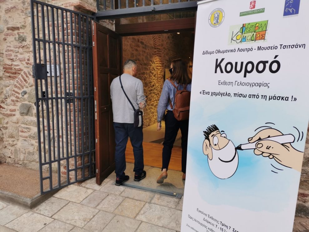 «Ένα χαμόγελο, πίσω από τη μάσκα!», πολλά χαμόγελα μπροστά στον Κουρσό. Ο Απόστολος Κουρσοβίτης, η ομώνυμη έκθεση του οποίου φιλοξενείται στο Μουσείο Τσιτσάνη (δίδυμο οθωμανικό λουτρό), τιμήθηκε από τον Δήμο Τρικκαίων στο πλαίσιο του Φεστιβάλ Κωμωδίας 2021.