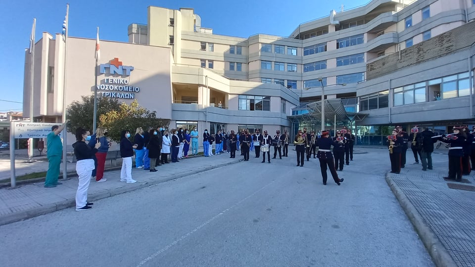 Συγκινητικές στιγμές το πρωί της Παρασκευής στο Νοσοκομείο Τρικάλων, εκεί όπου η φιλαρμονική ορχήστρα του Δήμου Τρικκαίων έπαιξε Χριστουγεννιάτικα κάλαντα για τους ασθενείς και τους εργαζόμενους.