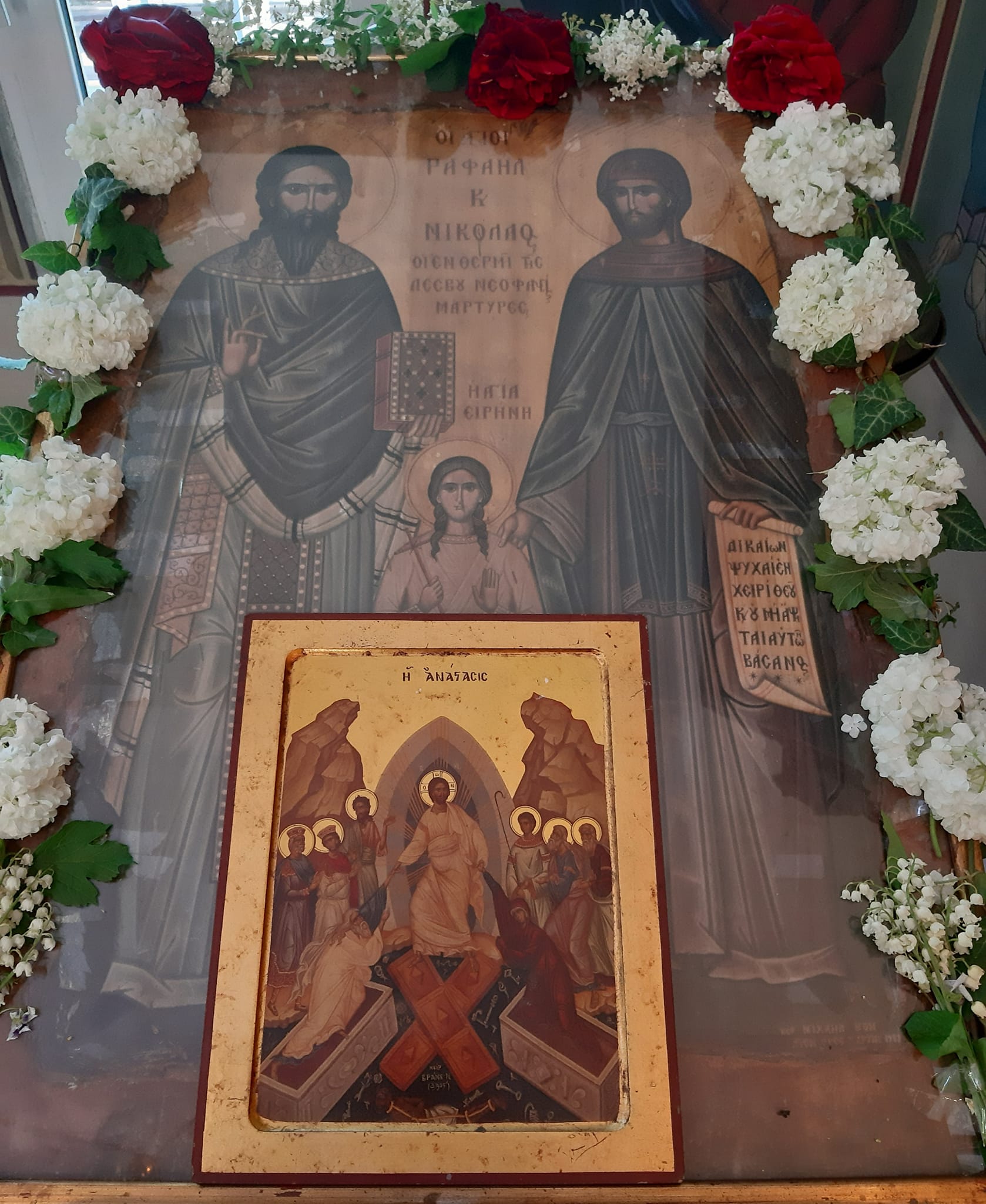 Παρόντος και συμπροσευχομένου του Μητροπολίτου Τρίκκης, Γαρδικίου και Πύλης Χρυστοστόμου τελέστηκε το πρωί της Τρίτης του Πάσχα η Θεία Λειτουργία στο εκκλησάκι που είναι αφιερωμένο στους Αγίους Ραφαήλ, Νικόλαο και Ειρήνη στο γραφικό Ξυλοπάροικο.