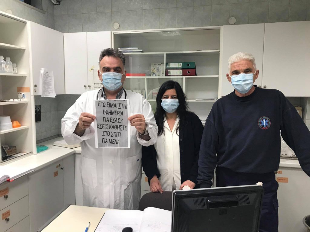 Σε θέση μάχης όλο το ιατρικό και νοσηλευτικό προσωπικό του Νομού μας αυτές τις μέρες. Συγκινεί ωστόσο η ανάρτηση του Ιωάννη Κουτσονάσιου του ιατρού ο οποίος όντας σε εφημερία στο Κ.Υ. Πύλης καλεί τους πάντες να συμμορφωθούν με τις εκκλήσεις της Κυβέρνησης. «Εγώ είμαι στην Εφημερία για εσάς. Εσείς καθίστε σπίτι για μένα»!!!…